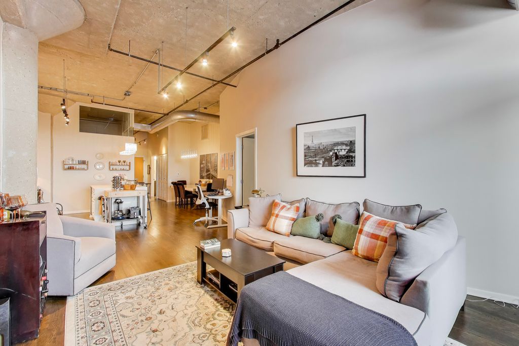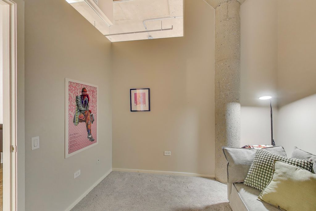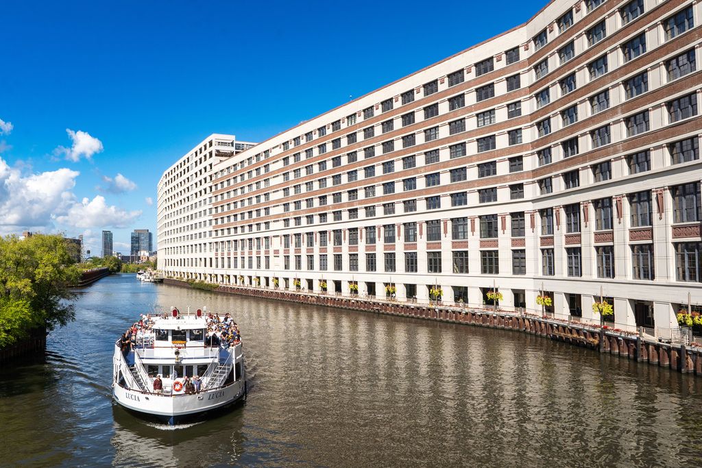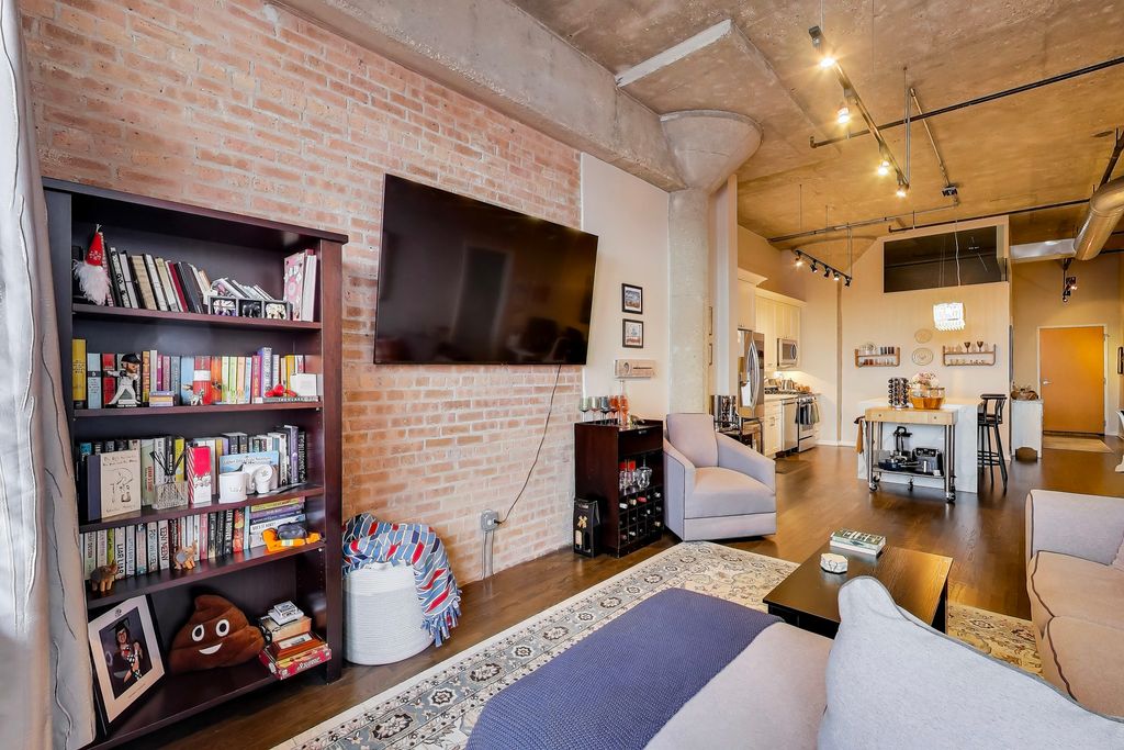 Tenant-occupied; showings very limited. Rarely available river-facing 2BR/2BA with W/SW exposure in the highly sought-after Domain Lofts, tucked into one of River North's most peaceful pockets. Enjoy sweeping 180-degree sunset, Chicago River, and skyline views from your private 140 sq ft covered terrace perched directly above the water. This coveted original floor of the 1902 warehouse offers 12-foot ceilings, exposed brick, and striking concrete columns, seamlessly paired with a 2019 renovation featuring modern cabinetry, a quartz waterfall island, upgraded stainless appliances, and designer lighting. The primary suite features an efficient walk-through closet leading to a refreshed ensuite bath with a glass-enclosed European shower. Both bedrooms are fully enclosed; the second is thoughtfully designed with tempered glass for privacy while preserving light and sound control. Additional features include a full-size washer/dryer and custom in-unit storage. Domain Lofts is exceptionally well managed and meticulously maintained, offering a premium four-pipe HVAC system for year-round comfort without the concern of aging mechanicals. Amenities include 24-hour door staff, package concierge, on-site maintenance, fitness center, bike storage, and a rooftop party room and deck with panoramic skyline views. Located directly on the covered Riverwalk with scenic walking paths and nearby dog parks, the building is just steps to the River North Marina and offers easy access to the Brown Line, Loop, Pace buses, Target, Starbucks, and River North's renowned dining and shopping. The setting feels like a true retreat while remaining moments from the city's energy. Heated, secure garage parking available for $30,000.