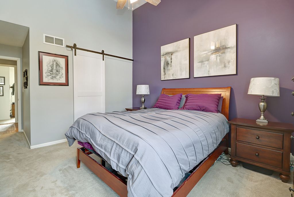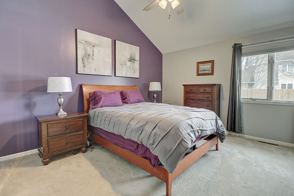 Lovely 3 bedroom, two story condo located in desirable Vista Commons. This spacious home features a dramatic great room with volume ceilings and a cozy wood- burning fireplace, creating a warm and inviting atmosphere. The living room door opens to a private patio- perfect for relaxing or entertaining. The primary suite is conveniently located on the main level and boasts a vaulted ceiling for an airy and luxurious feel. A second main level bedroom offers flexibility and would make an ideal home office or guest room. The open- concept kitchen flows seamlessly into the great room, making it perfect for entertaining. Stainless steel appliances and a breakfast bar add both style and function, creating an inviting space for gatherings. The second level features a private bedroom, full bath and a spacious walk in closet.Perfect for guests or a quiet retreat. The partially finished basement adds valuable additional living space, along with ample storage and a dedicated laundry area, offering both flexibility and convenience.