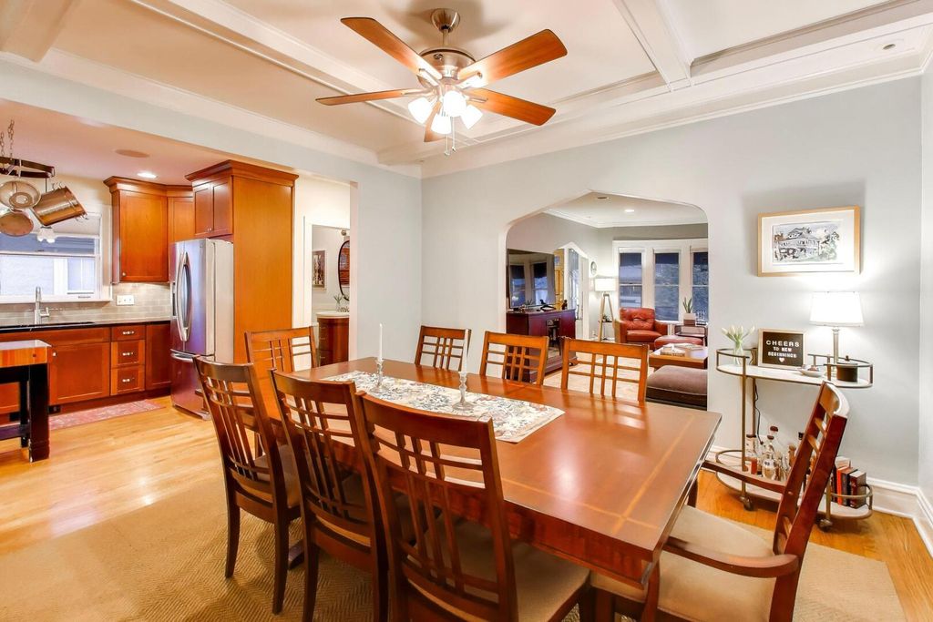 Waiting for you on a picturesque brick-paved, tree-lined street in a sought after area of Oak Park is this tastefully updated and meticulously maintained classic home. From the moment you step into the spacious foyer, you'll feel an immediate sense of warmth and welcome. The main level is truly an entertainer's dream. An updated open kitchen flows seamlessly into the oversized dining room, where coffered ceilings create an elegant backdrop for gatherings large and small. The expansive living room offers plenty of space to host friends and family for the big game, yet remains cozy enough for an intimate movie night. A beautifully updated first-floor powder room with heated floors adds a touch of everyday luxury, while a dedicated home office provides the perfect work-from-home retreat. Upstairs, you'll find 4 generously sized bedrooms and a recently updated full bath, also featuring heated floors. Continue to the finished third floor-an incredibly versatile space ready to become a hangout lounge, playroom, creative studio, or even a private primary suite oasis. The inviting front porch is made for sipping a cool drink on summer evenings, while the backyard showcases a stunning two-tiered deck (built Fall 2025), ideal for outdoor dining and entertaining. Just a short walk away, you'll find highly regarded Abraham Lincoln Elementary School, convenient access to the Chicago Transit Authority "El," and an array of charming local shops and restaurants. Located in a community renowned for its architecture, character, amenities, and convenience, this exceptional home blends the charm of yesteryear with the modern updates today's buyers desire-truly checking every box.