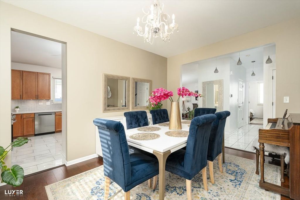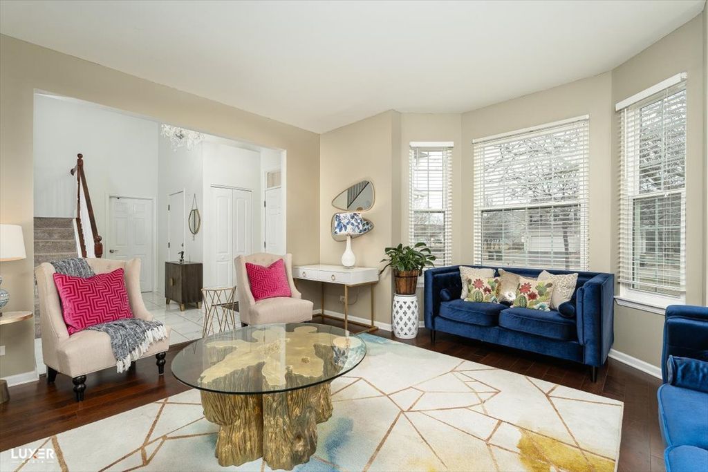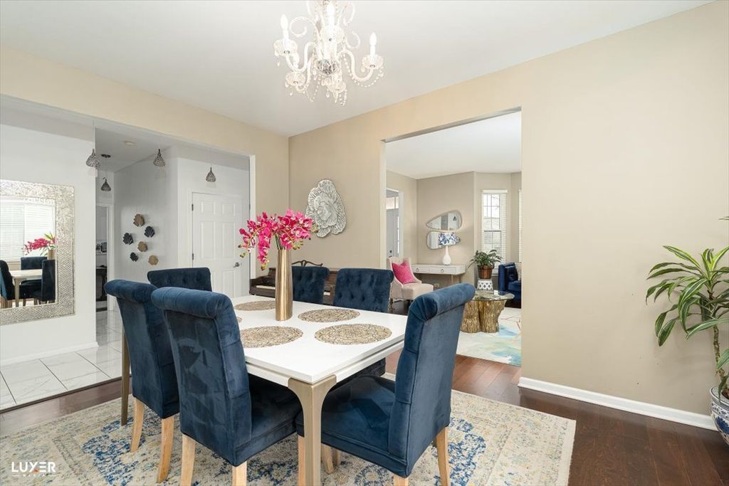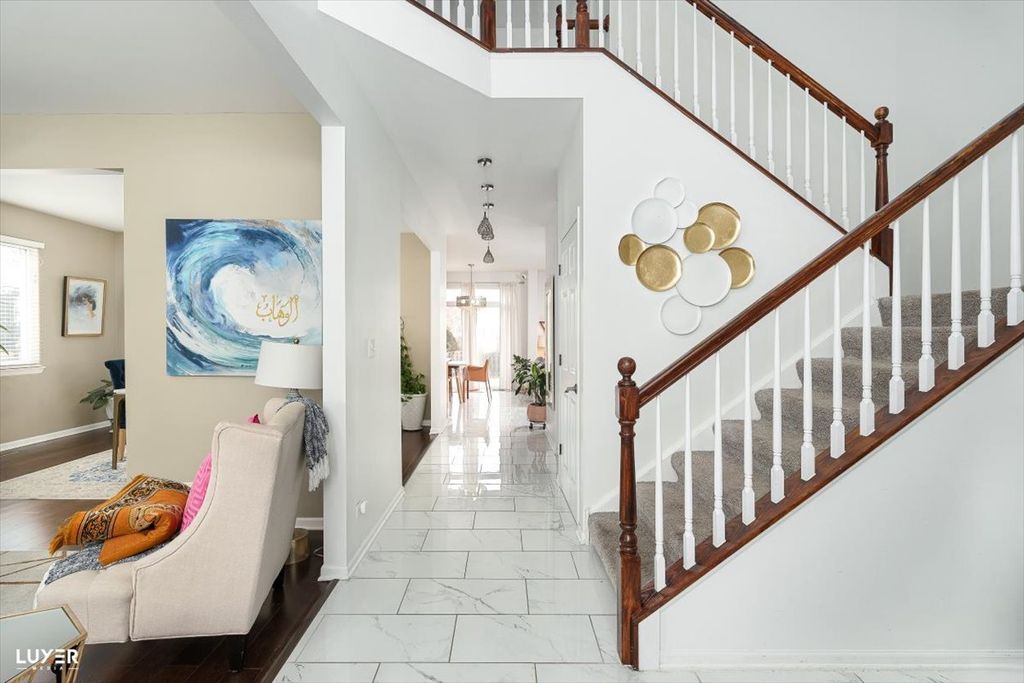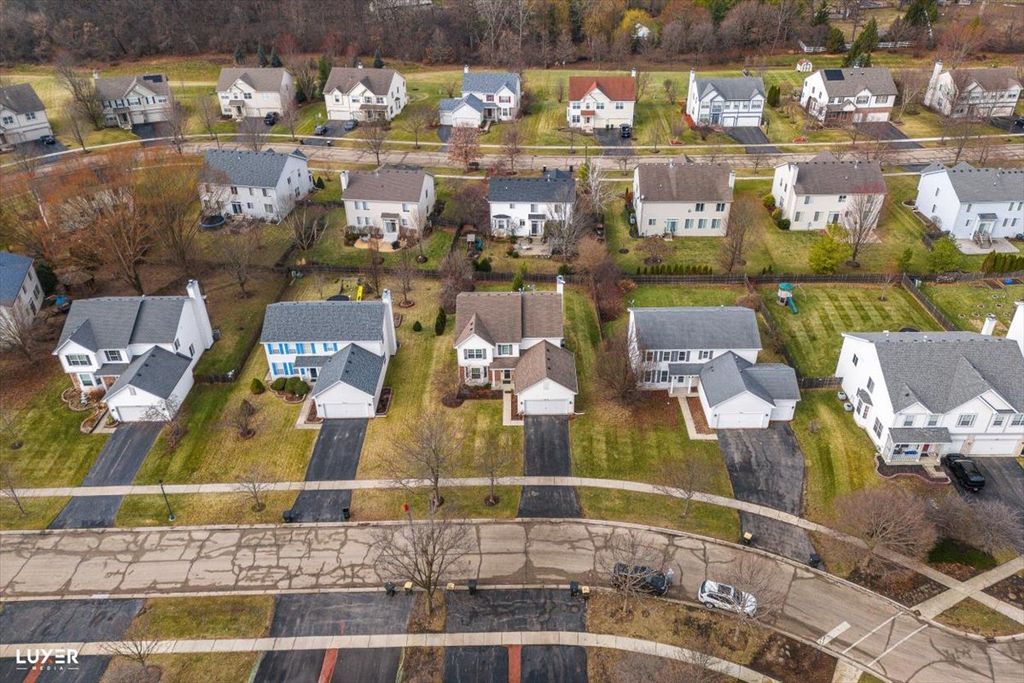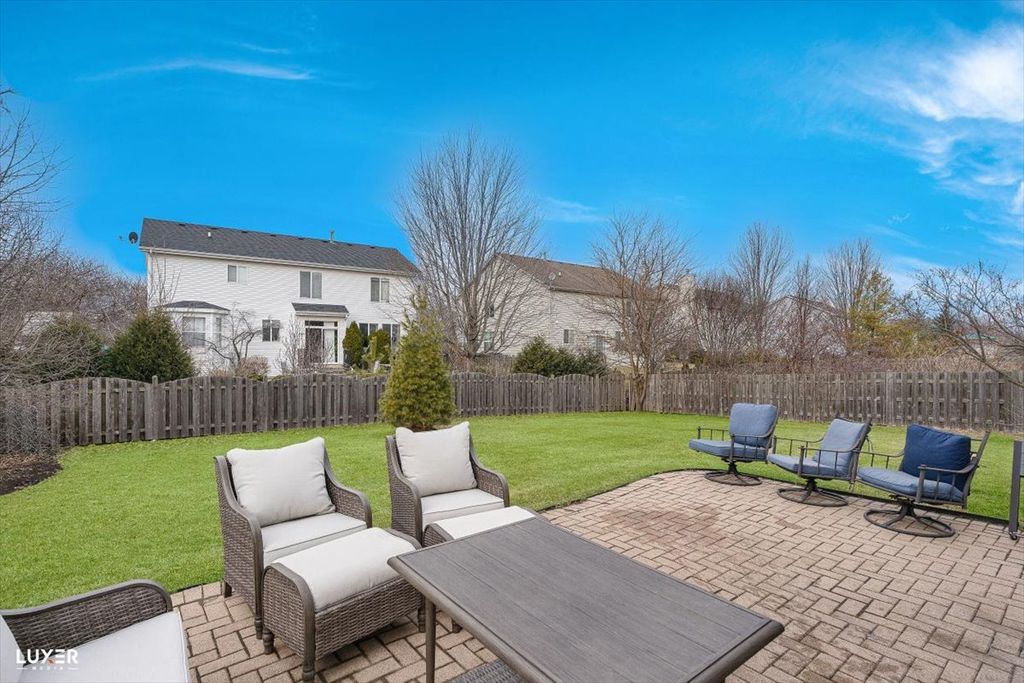 Spacious and beautifully maintained home offering approximately 2,800 sq ft above grade plus an additional 900 sq ft finished basement. The main level features a formal living room, separate dining room, and a private den/office, ideal for working from home or a quiet retreat. The expansive kitchen boasts 42" maple cabinets, Quartz countertops stainless steel appliances (2024), built-in microwave, pantry, planning desk, and porcelain tile flooring, along with a generous eating area. The kitchen opens to a cozy family room with a gas fireplace and stone surround. Upstairs you'll find four bedrooms, including a primary suite with a walk-in closet and a spa-like bath featuring double sinks, a soaking tub, and a separate shower. The finished basement adds incredible versatility with a large recreation room, fifth bedroom, and a full bath. Additional highlights include all windows replaced in 2019, garage door motor replaced in 2025, a brick patio, and a huge backyard. The association offers a clubhouse, swimming pool, tennis courts, and parks, plus access to highly rated schools.