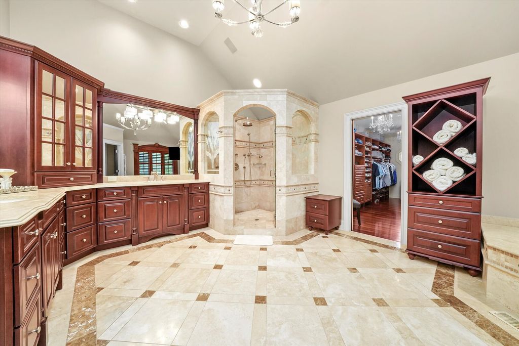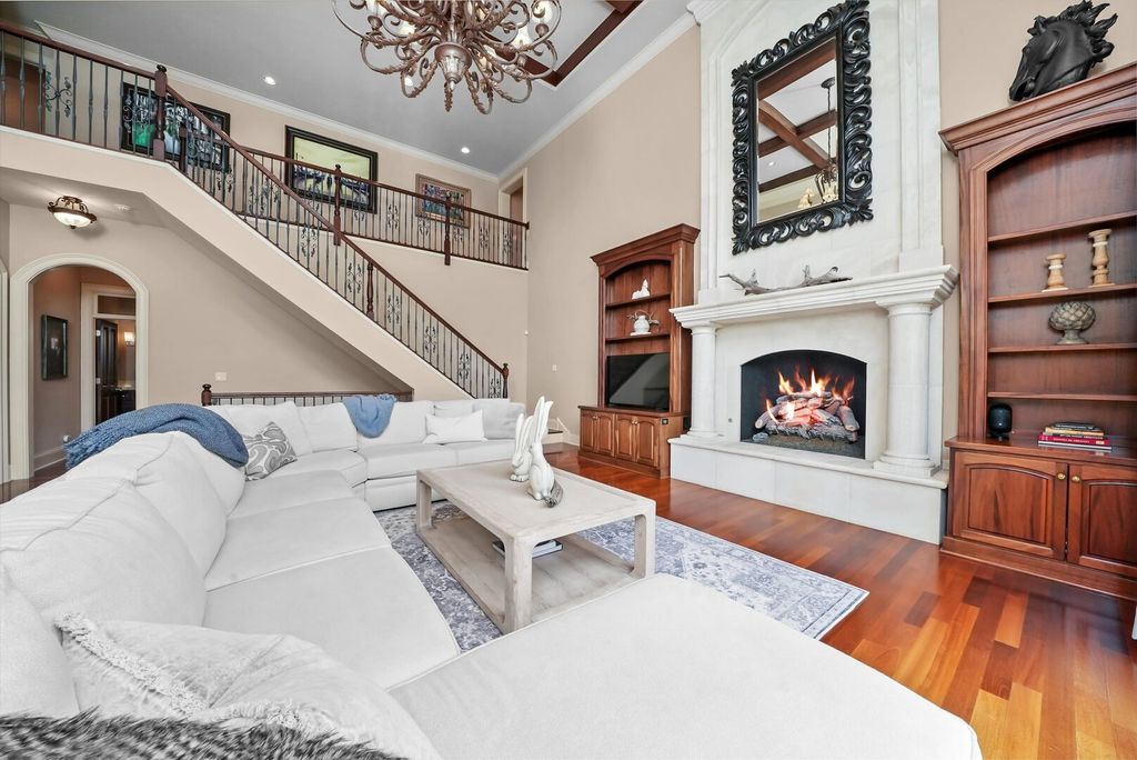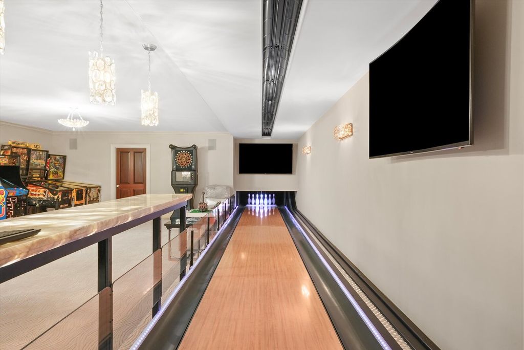 Experience true luxury in this spectacular 10,000+ sq. ft. estate that is perfectly situated on a meticulously landscaped property. Outside you will find a privately stocked pond with a sandy beach, a serene fountain and multiple outdoor spaces designed for relaxation and gatherings. Enjoy evenings by the fire pit lounge overlooking the pond, summer days on the charming deck, and the convenience of a 5-car garage with a horseshoe driveway. Inside, the home offers an expansive gourmet kitchen designed for entertaining, a lounge with a one-of-a-kind bowling alley, a spa-like bathroom with a steam shower, a wine room, cocktail bar and a cozy home theater. Every bedroom is a retreat with walk-in closets and most include morning kitchens for added comfort. A built-in sound system throughout the interior and exterior creates the perfect atmosphere for gatherings. This stunning home combines timeless design with resort-style amenities, an estate that is truly a rare find!