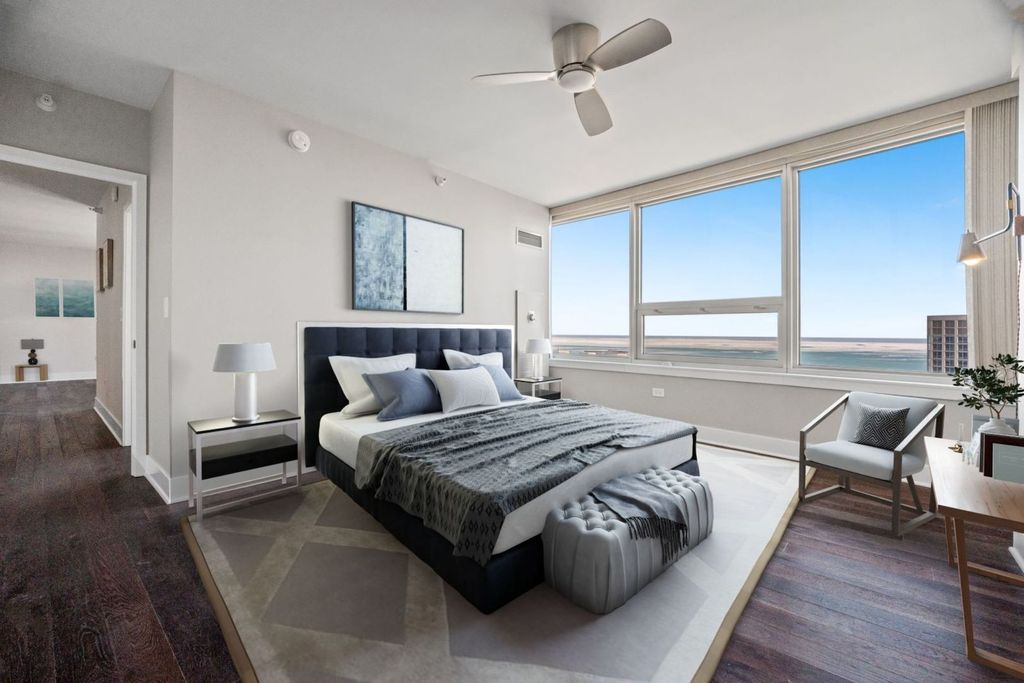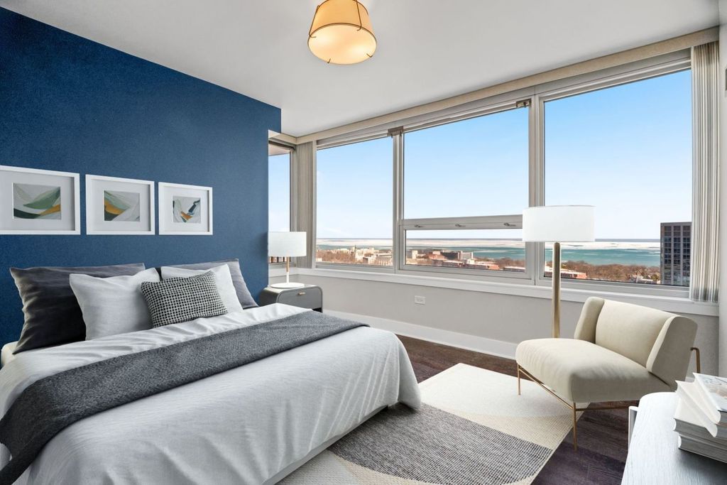Welcome to Sherman Plaza-where elevated design, iconic lake views, and effortless downtown Evanston living converge. Perched high on the 20th floor, this east-facing residence offers sweeping, unobstructed views of Lake Michigan through dramatic floor-to-ceiling windows, filling the home with natural light and a constant sense of openness. Recently renovated, this refined 2-bedroom, 2-bath home spans just under 1,300 square feet of sophisticated, turnkey living. The open-concept layout is designed for both elevated daily living and stylish entertaining, featuring designer-curated finishes and rich walnut-stained wood flooring throughout. The kitchen is a statement in both form and function, enhanced with an extended breakfast bar, contemporary cabinetry, custom backsplash, upgraded lighting, and modern appliances. Every living space and both bedrooms enjoy coveted eastern exposures. The serene primary suite is a true retreat, offering a huge walk-in closet and a spa-caliber, fully custom bath. A beautifully updated second bath, dedicated in-unit laundry room, and private balcony complete the residence. Sherman Plaza is Evanston's premier full-service condominium, delivering white-glove living with 24-hour door staff, on-site management and engineering teams, a fitness center, hospitality suite, common outdoor deck, private storage, and secured attached garage parking with EV compatibility. Residents enjoy direct interior access to Life Time Fitness and Target. Ideally located just blocks from Northwestern University, the lakefront, Metra, premier shopping, dining, and cultural destinations, this pet-friendly building offers exceptional walkability and convenience. This is an exceptional opportunity to own a refined lakeview residence in the heart of downtown Evanston.