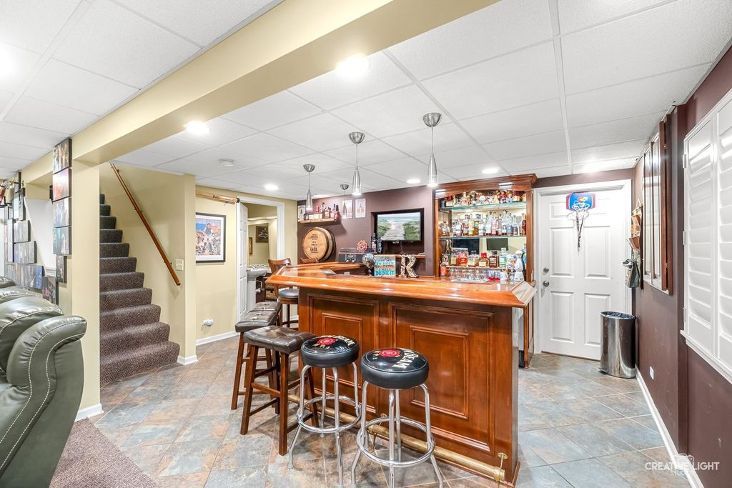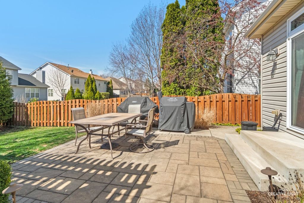 Welcome to this exceptional home in a desirable St. Charles neighborhood! This home has so much to offer as you step into the open foyer featuring beautiful hardwood floors throughout the first floor. The kitchen boasts 42-inch cabinets and stainless steel appliances and flows seamlessly into the spacious family room, complete with built-in shelving and an electric fireplace. Patio doors lead to a beautifully fenced backyard featuring a pergola and fire table. A hot tub (10 years old) is also included for year-round enjoyment Upstairs, you'll find four generously sized bedrooms, all with closet organizers, ceiling fans, and brand-new carpet. The primary suite features a walk-in closet and an en-suite bath with double sinks, a jetted tub, and a large shower with side jets. The second full bath also includes double sinks. The finished basement is ideal for entertaining, offering a wet bar with refrigerator and dishwasher, two bonus rooms (one currently used as an exercise room), and a full bathroom. Additional highlights include an extra-deep garage for added storage. Major mechanical updates include a furnace and A/C that are 5 years old and a water heater that is 10 years old. Roof is original! Sellers are seeking a closing date in late May or early June. This home is being sold AS-IS.