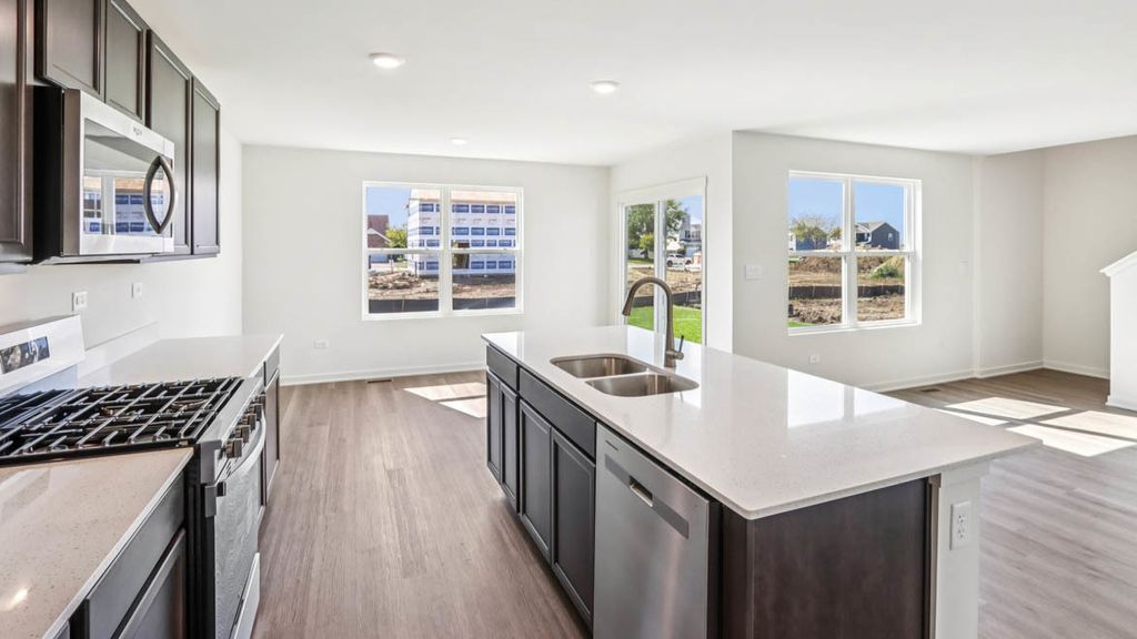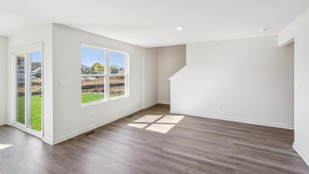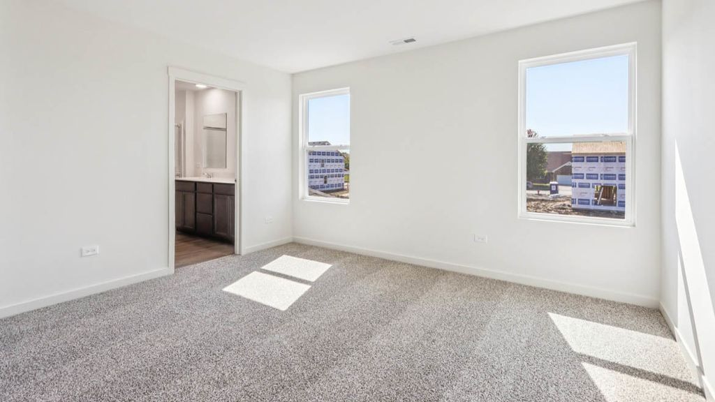 Introducing the Bradley plan, one of our single-family plans at Cedar Creek in Joliet, IL. This home at 3702 Stockton Drive is situated on a spacious home site, providing plenty of room for outdoor enjoyment ready for a summer move-in. Step inside this 1,663 square foot home with 3 bedrooms, 2.5 baths, a 2-car garage and smart home technology. Entering the foyer, you will first pass the powder room and then walk into the main level living space. The living area is open concept, with your bump out dining area, a living room, and kitchen blend together seamlessly. The kitchen shows off beautiful cabinetry, a pantry, and an island with ample seating space that looks out to the living room. This layout is great for entertaining family and friends. Upstairs, you'll find a loft which is perfect as a home office or study space! Your primary bedroom features a deluxe bath with ample storage in the walk-in closet, and a dual sink vanity. Two additional bedrooms with closets, a second bath, linen closet, and a convenient upstairs laundry room complete the rest of the second floor. All Chicago homes include our America's Smart Home Technology, featuring a smart video doorbell, smart Honeywell thermostat, smart door lock, Deako smart light switches and more. Photos are of similar home and model home. Actual home built may vary.