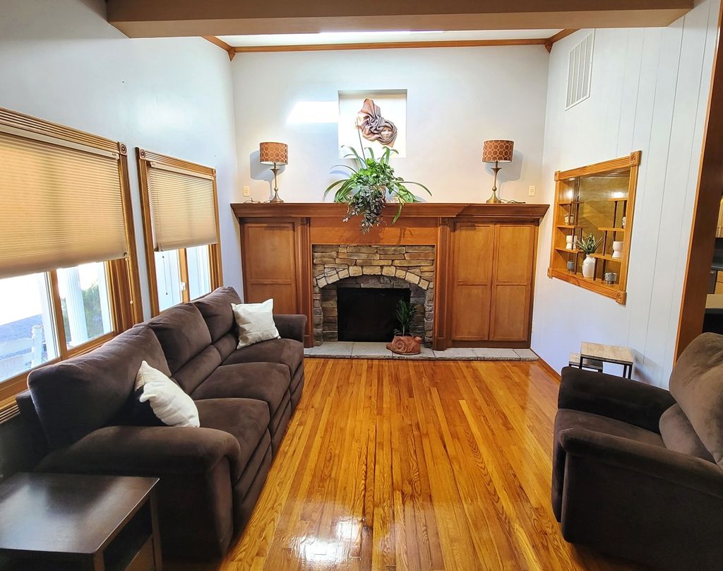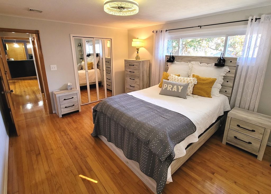 Discover this distinctive 1950s forward thinking Usonian design with a great location! This updated residence offers a flexible floor plan with three bedrooms and a versatile den that could easily function as a 4th bedroom or additional family room. Original hardwood floors create a seamless flow through the living, dining, and bedroom areas. The heart of the home is the custom kitchen, equipped with a breakfast bar, coffee bar, solid surface counter tops and 2 pantries. Remote controlled gas fireplace and natural light created by a skylight overhead in the living room. The hall bath is designed for utility, featuring a Jacuzzi-style tub and a double vanity with one oversized utility sink; smart toilets in each bathroom. The outdoor living spaces include a secluded 12' x 20' screened porch tucked behind the garage and a deck leading to a courtyard with a mature magnolia tree and storage shed. Additional highlights include custom blinds; new lighting and fans; stainless steel Samsung "no odor transfer" refrigerator and Bosch brand dishwasher, range, and Bosh brand washer and dryer; 6-panel doors; an expansive 880-square-foot poured concrete driveway; new garage opener with code; 10" of foam and sump-pump in crawl space. All of this under a new roof installed in September of 2025!