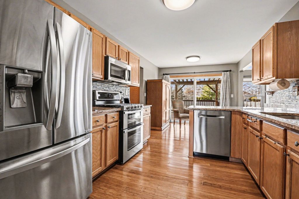 Great curb appeal with the home situated on a large lot and a hard-to-find 3-car garage at this price point. Bright two-story family room with a cozy gas fireplace, hardwood floors, and large windows letting in lots of light and overlooking a huge yard. Eat-in kitchen with granite counters and overlooks family room and yard. A large mud room welcomes you with plenty of closet space. The second floor offers a versatile loft area and a spacious primary suite complete with a sitting area, walk-in shower, linen closet, and walk-in closet. The yard backs to open space, offering privacy and beautiful views. Enjoy the expansive deck, stamped concrete patio, pergola, and 6-foot privacy fence. The full basement is partially finished, offering additional living or recreation space with plenty of storage. Major updates include: HVAC (2019) Primary bath walk-in shower (2020) Family room lower windows (2021) Roof (2022) Water heater (2023) Overhead basement lighting (2023) Double oven (2023) So many more updates and the home is truly move in ready.