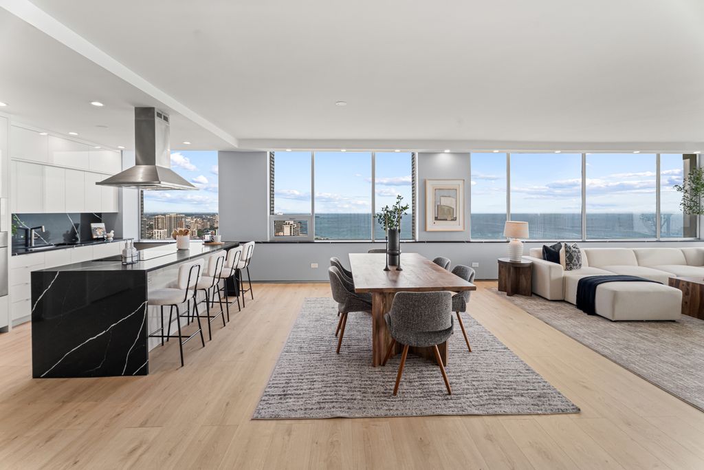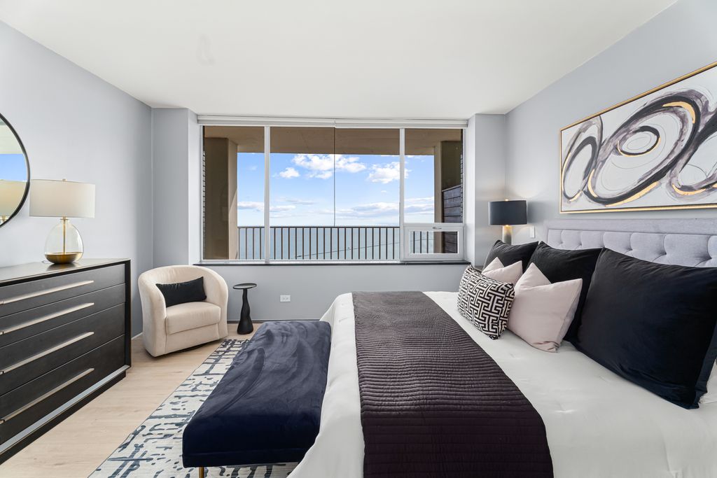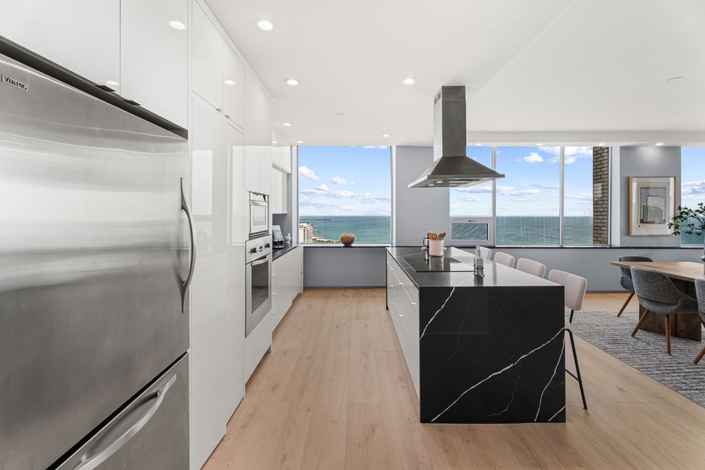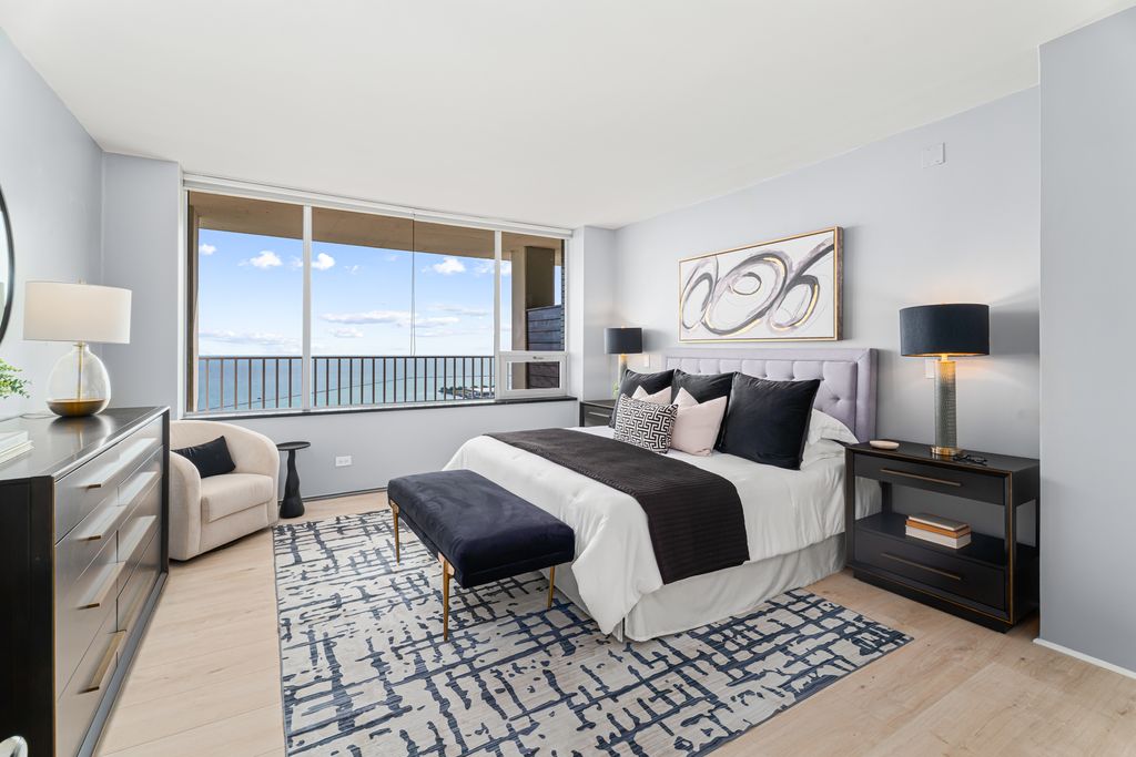 Don't miss the chance to call this special home yours! Perched high above the city, this beautifully remodeled former three-bedroom has been reimagined into an expansive two-bedroom, two-and-a-half-bath residence with a rare oversized laundry and mudroom. From the moment you step inside, you're welcomed by breathtaking lake and city views that deliver a "wow" factor in every room. A stunning forty-foot east-facing balcony spans the living area, offering the perfect setting to enjoy morning coffee as the sun rises over Lake Michigan or to unwind with a glass of wine as the skyline sparkles at sunset. The thoughtful open layout and high-end finishes make this home ideal for both everyday living and elegant entertaining, all in one of Chicago's most coveted Gold Coast addresses. With nine-foot ceilings, a move-in ready design, and panoramic views of Lake Michigan and the city lights, this home delivers both comfort and sophistication. Residents enjoy five-star amenities including a 24-hour door staff, a fully equipped fitness center, an indoor pool, a sundeck, and a hospitality room with catering kitchen. All of this is just steps to world-class shopping, fine dining, and the very best of the Gold Coast lifestyle.