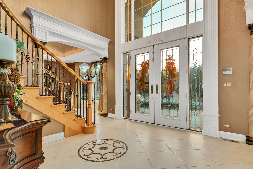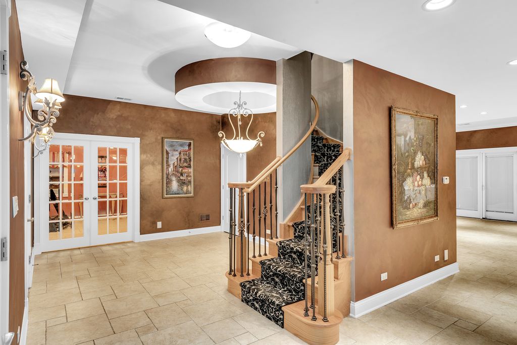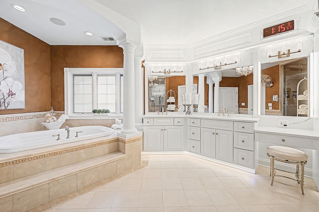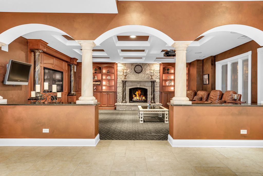 Exceptional 9,000 sq ft custom estate offering 5 bedrooms and 7 bathrooms and 4 fireplaces in prestigious Bloomingdale. Built with 63 structural caissons to support the 42 ton clay tile roof and 3/4" piping throughout for superior structural integrity, this extraordinary residence showcases soaring ceilings, exquisite mosaic tile flooring throughout the entire first floor and walk-out basement, and mosaic tile walls in every bathroom - 7,000 square feet of mosaic tile. Designed for grand living and entertaining, the fully finished lower level with an additional full kitchen, is a private wellness retreat featuring an indoor spa with hot tub, 2nd steam shower, and sauna, plus a theatre room for an immersive cinematic experience. Exterior and structural enhancements set this home apart, including a clay tile roof, limestone detailing around all windows, oversized 2-foot eaves and gutters, a paver circular driveway, over 120 exterior lights including five 1,000-watt security lights, concrete deck with blue stone walkway and a secondary entrance. Major updates include new ovens, dishwasher, furnace, AC, and boiler, along with dual-zoned heating and air for optimal comfort. The radiant-heated 3-car garage with crown molding and epoxy flooring reflects the home's exceptional craftsmanship and attention to detail. A rare opportunity to own a resort-caliber luxury estate built with strength, scale, and uncompromising quality. No sign on property