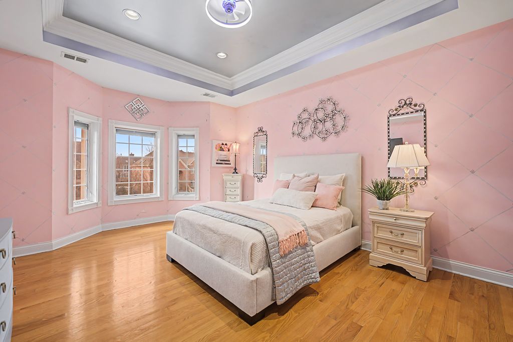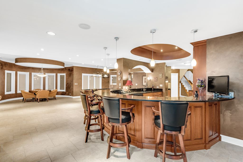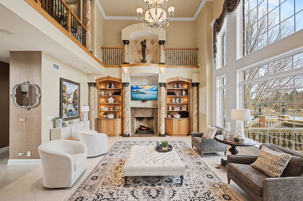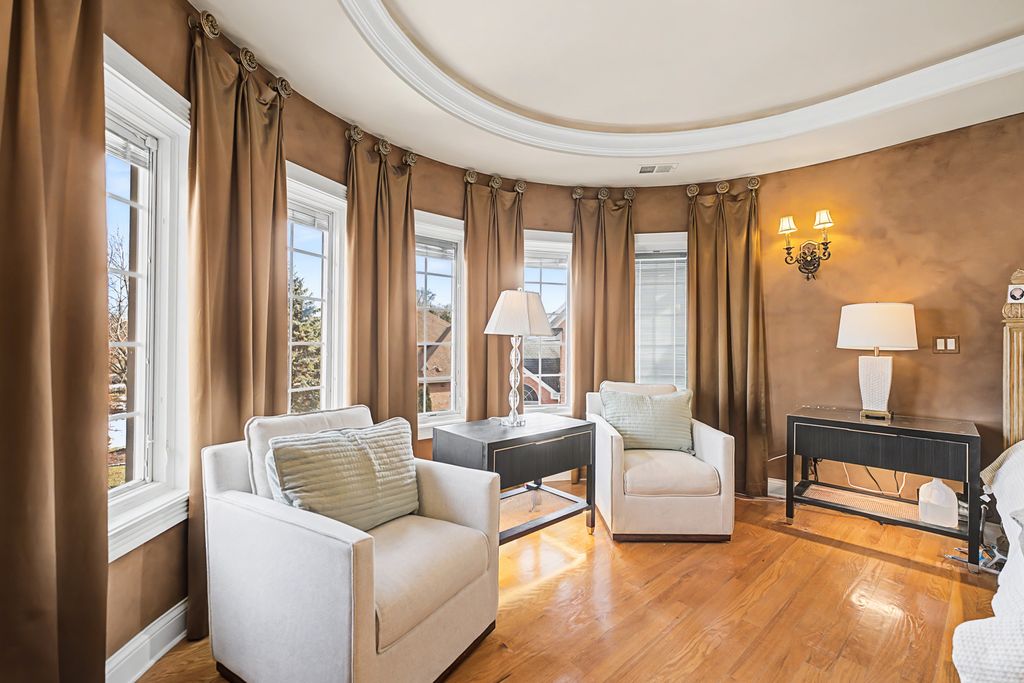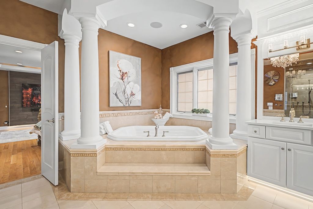 Exceptional 9,000 sq ft custom estate offering 5 bedrooms and 7 bathrooms and 4 fireplaces in prestigious Bloomingdale. Built with 63 structural caissons to support the 42 ton clay tile roof and 3/4" piping throughout for superior structural integrity, this extraordinary residence showcases soaring ceilings, exquisite mosaic tile flooring throughout the entire first floor and walk-out basement, and mosaic tile walls in every bathroom - 7,000 square feet of mosaic tile. Designed for grand living and entertaining, the fully finished lower level with an additional full kitchen, is a private wellness retreat featuring an indoor spa with hot tub, 2nd steam shower, and sauna, plus a theatre room for an immersive cinematic experience. Exterior and structural enhancements set this home apart, including a clay tile roof, limestone detailing around all windows, oversized 2-foot eaves and gutters, a paver circular driveway, over 120 exterior lights including five 1,000-watt security lights, concrete deck with blue stone walkway and a secondary entrance. Major updates include new ovens, dishwasher, furnace, AC, and boiler, along with dual-zoned heating and air for optimal comfort. The radiant-heated 3-car garage with crown molding and epoxy flooring reflects the home's exceptional craftsmanship and attention to detail. A rare opportunity to own a resort-caliber luxury estate built with strength, scale, and uncompromising quality. No sign on property