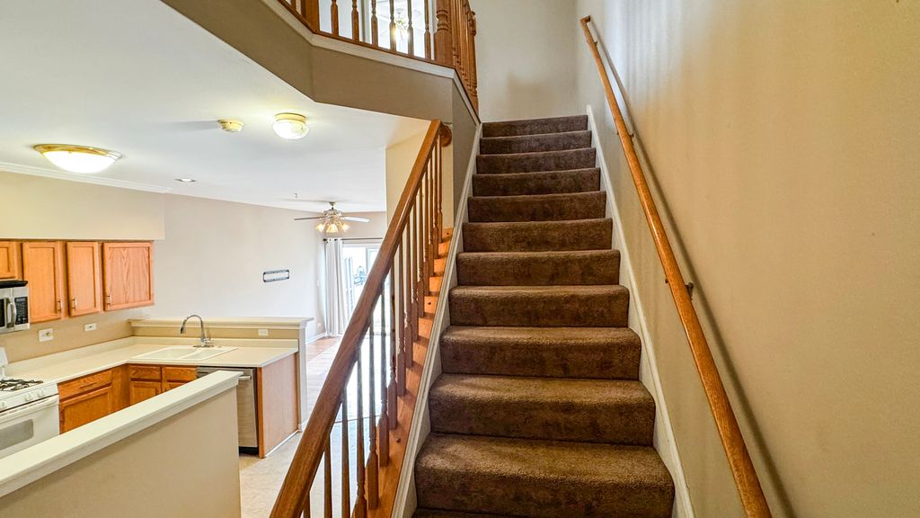 Move right into this well-maintained townhome in desirable Oakhurst North. A dramatic 2-story foyer, 9' ceilings, an outdoor patio, and a gas-fireplace add warmth and dimension. The spacious primary bedroom includes vaulted ceilings, two closets, and direct bath access, plus the convenience of second-floor laundry with a newer washer and dryer. All appliances stay with a newer furnace and AC. Ideally located minutes from Route 59 train station, I-88, shopping, dining, and close to downtown Naperville. Low monthly assessments cover exterior maintenance, lawn care, trash, and snow removal, making this an exceptional value in a high-demand area.