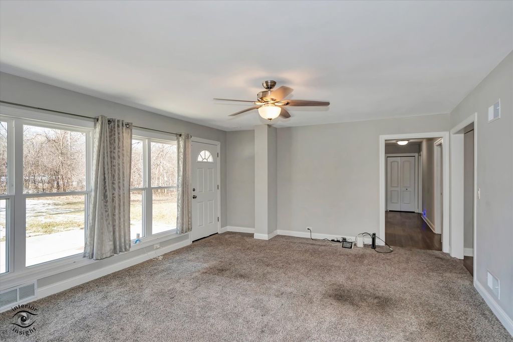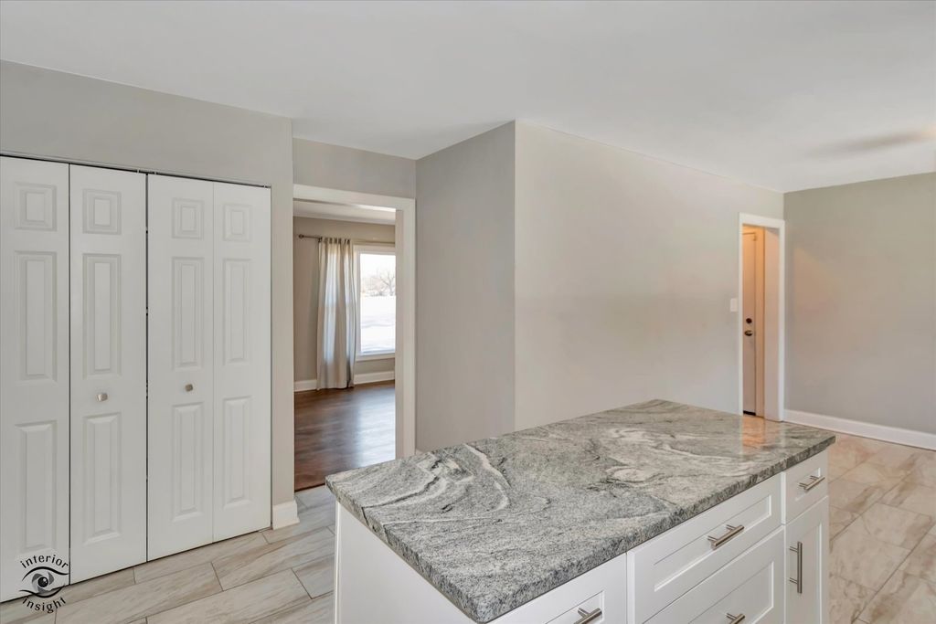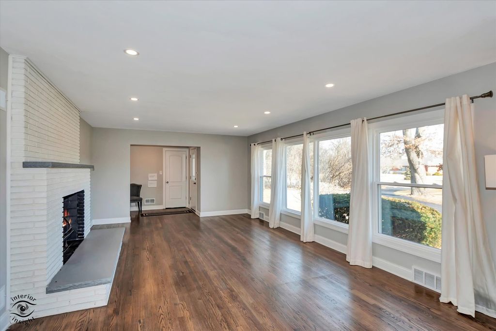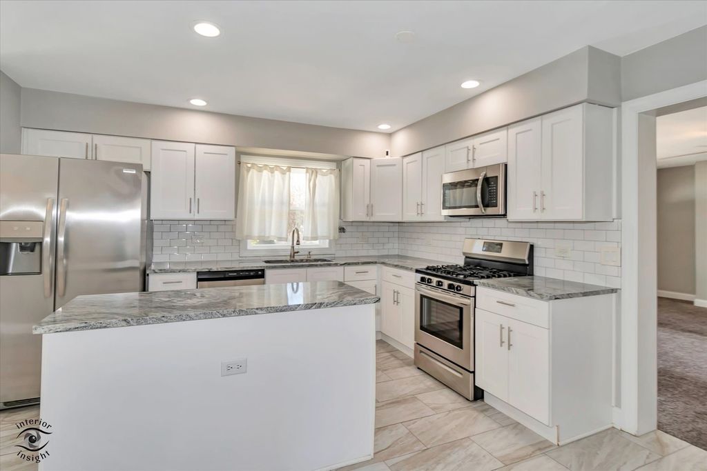 Beautifully updated and expansive ranch set on a nearly one-acre (.96) lot, offering 3 bedrooms, 2 full baths, and a full basement with approximately 1,900 sq ft of living space. Thoughtfully redesigned with modern finishes throughout, this home delivers both style and comfort. The showstopping kitchen features crisp white cabinetry, new granite countertops, classic subway tile backsplash, a granite-topped center island, and brand-new stainless-steel appliances. Upgraded electrical enhancements include new can lighting and designer pendant fixtures, creating a bright, contemporary feel. Enjoy new flooring throughout, including hardwood floors and plush new carpeting. Generous living spaces include a large living room with a wood-burning fireplace, along with separate dining and family rooms-ideal for everyday living and entertaining. Abundant new windows flood the home with natural light. Both full bathrooms have been completely remodeled, showcasing granite-topped modern vanities and custom tiled showers. Major improvements include a brand-new A/C unit, new garage door, tear-off roof, and all new gutters, making this home truly move-in ready.