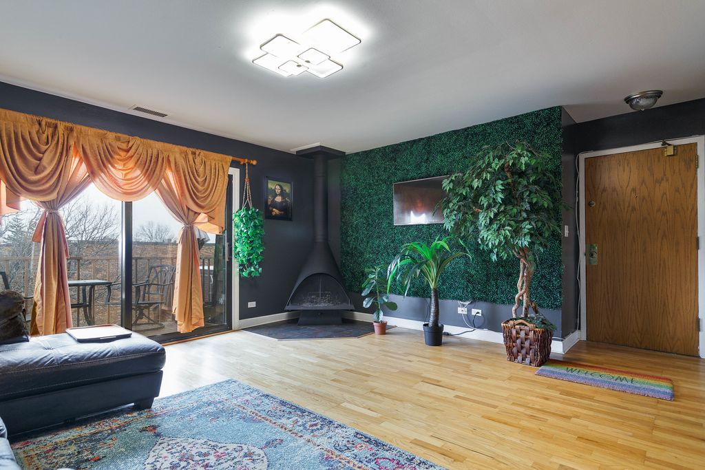 Fall in love with this beautifully maintained third-floor condo overlooking a picturesque courtyard! The spacious, open-concept floor plan is filled with natural light and highlighted by gleaming hardwood floors. The inviting living room features a cozy wood-burning fireplace and sliding glass doors that lead to your own private balcony - the perfect spot for morning coffee or evening relaxation. The eat-in kitchen offers stainless steel appliances and an oversized pantry rarely found in other units, providing exceptional storage and functionality. Reverse osmosis water filtration system added in kitchen in 2025. The generously sized bedroom features plush neutral carpeting and a large walk-in closet. Laundry hookup in unit. The bathroom is appointed with a cultured marble vanity and an acrylic surround tub/shower combination. One assigned parking space is included, along with ample guest parking. Residents enjoy outstanding community amenities including a sparkling outdoor pool, clubhouse, scenic walking paths, a tranquil pond, and tennis courts. The HOA covers heat, gas, water, and trash for added value and convenience. All of this in an unbeatable location close to shopping, dining, schools, and expressways. Move right in and start enjoying maintenance-free living at its best!