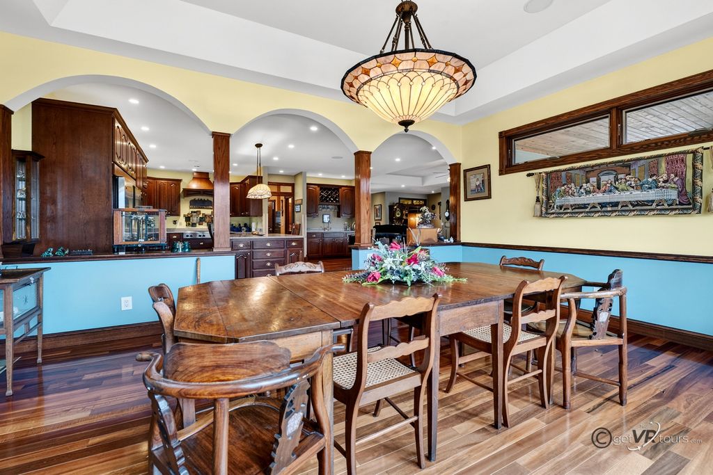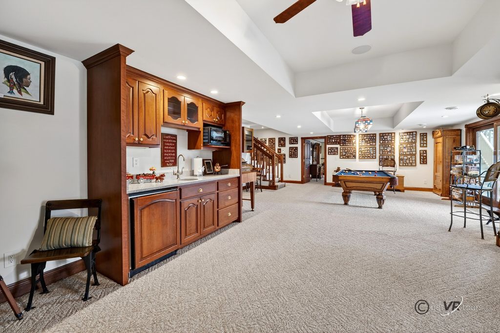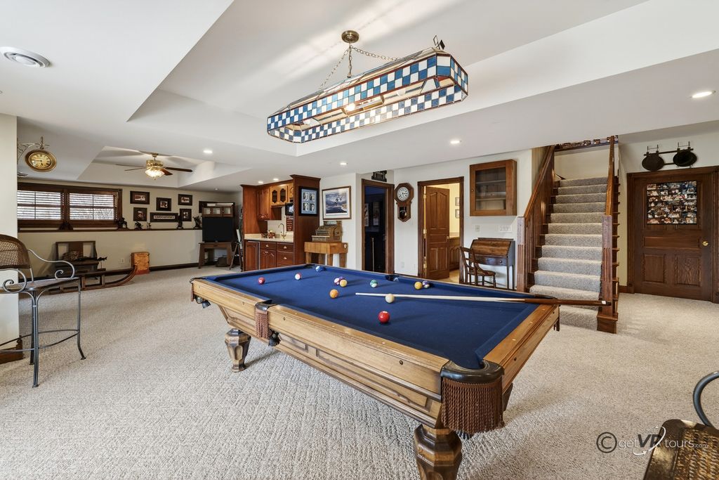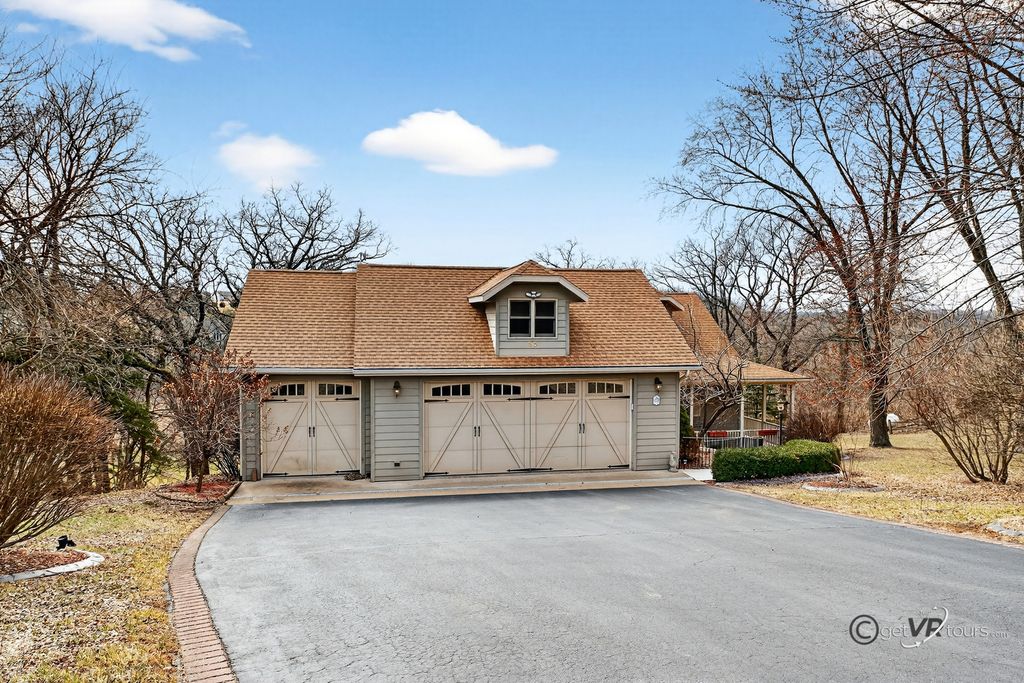 Home for Sale, Apple Canyon Lake, Apple River, IL 61001. Four-bedroom home with three-garage for sale at 11A65 Fairway Drive, Apple River, IL 61001. This gorgeous upscaled custom built home was built in 2006, with 4041 finished square foot, perched on the scenic hillside overlooking Hole 4, of the Apple Canyon Lake Golf Course. This home offers four bedrooms, two bedrooms are on the main level(one is currently used as an office) and the other two are on the lower level. As you walk through the front door entryway, you are greeted by the living room offering a gas Heat and Glow fireplace, Muskoka Custom tigerwood flooring that runs through the main level. One of the low maintenance decks is off the living room, for additional outdoor living space, and to truly enjoy the scenic views that this property offers. Entering the generous sized custom kitchen, the counter tops are Cambria natural quartz, with island for seating, Bader cabinets, with soft close and detailed dove tail in drawers, stainless steel appliances Whirlpool and KitchenAid, a six-burner gas stove, and instant hot water at kitchen sink. Off the kitchen is the ample sized laundry room on the main level, offering Maytag washer and gas dryer, a half-bath off to the side, which makes this home perfect for main level living. The dining room area overlooks the back yard and is a great gathering area for friends and family. The spacious main level primary bedroom boasts Planation shutters, a full bathroom, Travertine tile flooring, a steam shower, and walk in closet. One of two wet bars is located between the living room and kitchen area. Heading downstairs to the lower level is where you will find the other two bedrooms, a huge recreational room, another wet bar, and an amazing theatre room. The theatre room offers eight Lazy Boys, TV, and monitor system. Looking for storage area, it is no problem, there is a 20'x 23' area to store all your things. Off the recreational room is an additional deck, with low maintenance decking for more outdoor living space and a hot tub for star-lite nights. There is a surround sound system throughout the home, garage and deck. Other features to this upscaled home, Hardy board siding, solid five-panel doors, fluted molding, hot/cold water located in the garage, central vacuum system throughout home. architectural shingles, rated for 50 years, asphalt driveway resealed Fall 2025, and more storage in the attic space25'x8' there is radiant heat in the lower level, unknown if it works, hot tub is staying, seller is unsure if it works, there is a deeded boat slip if the next buyer is interested in continue renting , M-8-11. Seller is offering a 14-month, from Home Warranty, Signature Coverage. Home is being sold AS-IS, whereas. The seller is a licensed real estate broker. HOA applies. Pool table does not stay. Dimensions are approximates and aerial views are estimated boundary lines and not a survey.