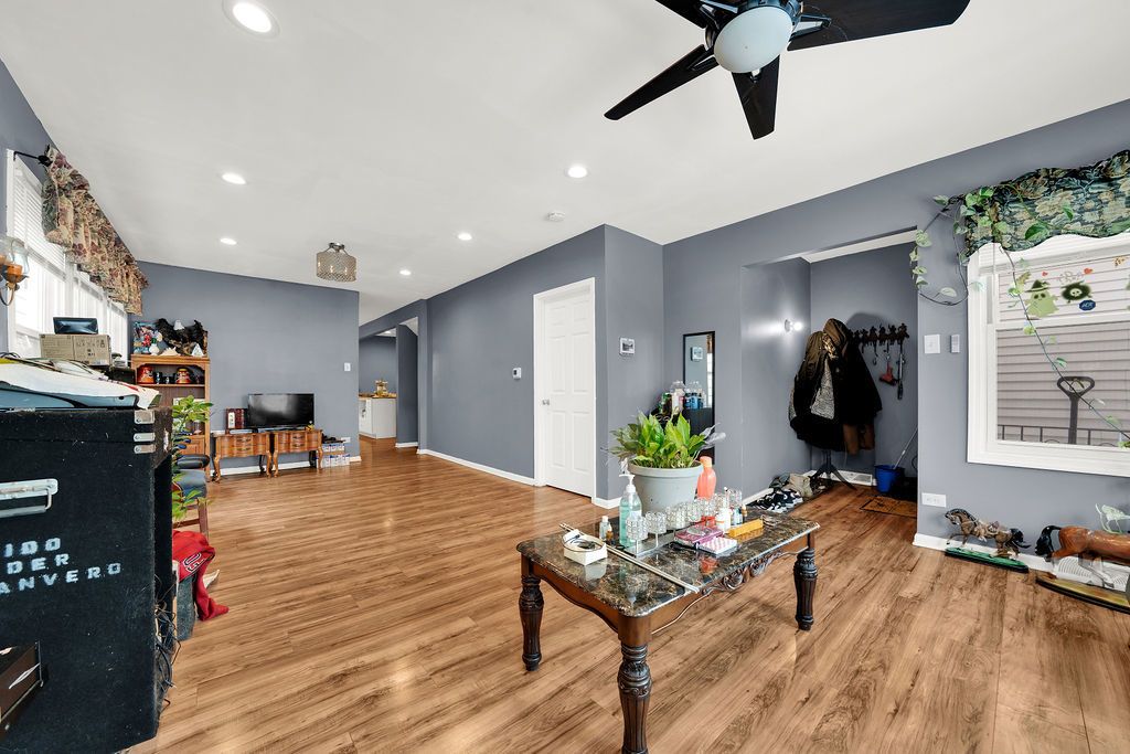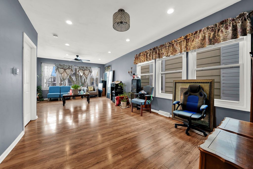 Fully renovated in 2021, this home offers generous space and a versatile layout with 5 bedrooms and 2 full bathrooms, ideal for larger households, multigenerational living, or work-from-home flexibility. The main level features an open living and dining area filled with natural light, along with a redesigned kitchen equipped with granite countertops, crown-molding cabinetry, stainless steel appliances, and an island with seating. Major updates completed in 2021 include updated windows, insulation, exterior framing, central air conditioning, and modern light fixtures. The finished basement extends the living space with two additional bedrooms, a full bathroom, a second family area, and a dedicated laundry area. Property is being sold as-is.