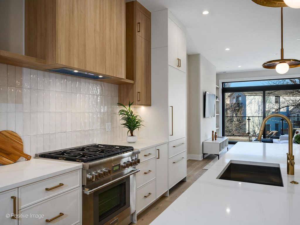 Gorgeous New Construction 3BR / 2.5BA Duplex Up with Massive Private Roof Deck in Wicker Park. Experience luxury living in this brand-new 3 bed, 2.5 bath duplex up featuring a massive private roof deck, high-end fixtures, and sophisticated finishes throughout. The main level offers an expansive open-concept living/dining area, anchored by a chef's kitchen with premium appliances, quartz countertops, custom cabinetry, and a large island-perfect for entertaining. Upstairs, the primary suite features a walk-in closet and spa-like bath with double vanity, soaking tub, and walk-in shower. Two additional bedrooms, a second full bath, and laundry complete the upper level. Hardwood floors, designer lighting, and thoughtful design enhance the home's modern elegance. Enjoy unmatched outdoor living on your oversized PRIVATE ROOF DECK --ideal for summer dining, lounging, and hosting-plus a balcony off the main level for added space. Located in a great part of Wicker Park, moments away from award-winning restaurants, boutique shopping, vibrant nightlife, and easy transit access, this home offers the best of city living. One garage parking space is included in the price. *Photos are of actual completed unit. **Renderings and plans, etc. are for marketing purposes only; finishes/plans may change at the discretion of Seller. Buyer(s) and their representation to confirm all finishes prior to purchase.
