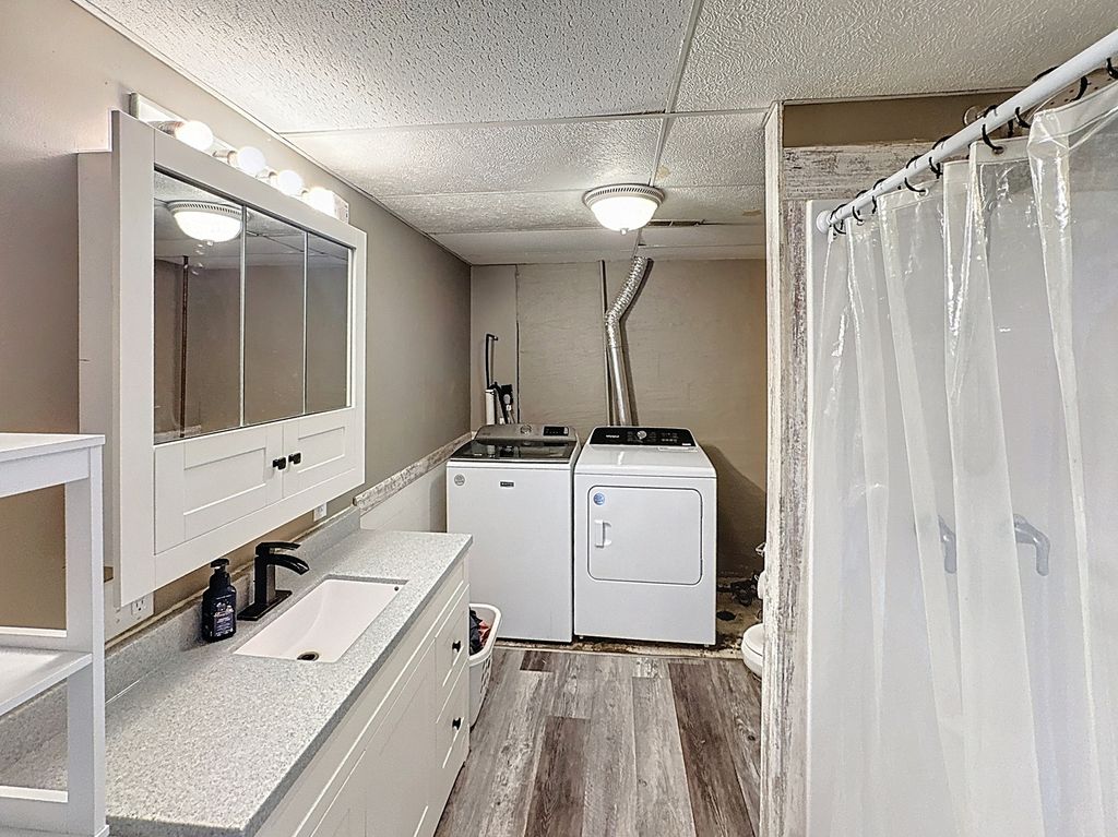 4-bed, 2-bath ranch in Blue Grass offering the rare advantage of an additional lot included in the sale, bringing the total acreage to 0.658. This well-maintained property features 3 bedrooms and a full bathroom on the main floor, along with a comfortable living area designed for everyday convenience. The finished basement expands the layout with a spacious 4th bedroom (primary), a second full bathroom combined with the laundry area, and an additional large living room with egress windows for natural light. Radiant heated basement floors, supplied by a tank water heater, enhance overall comfort, and the utility room provides generous storage space. The heated 2-car garage adds year-round functionality. Major 2023 updates include a new roof, siding, soffits, gutters, black chain link fence, composite front and back decks, radon mitigation system, sump pump, and ejector pump. In 2025, improvements include a new gas meter, and garage furnace gas shut-off. Listing includes parcel 720609109013, located directly behind the subject property. Schedule your showing to see everything this property offers.