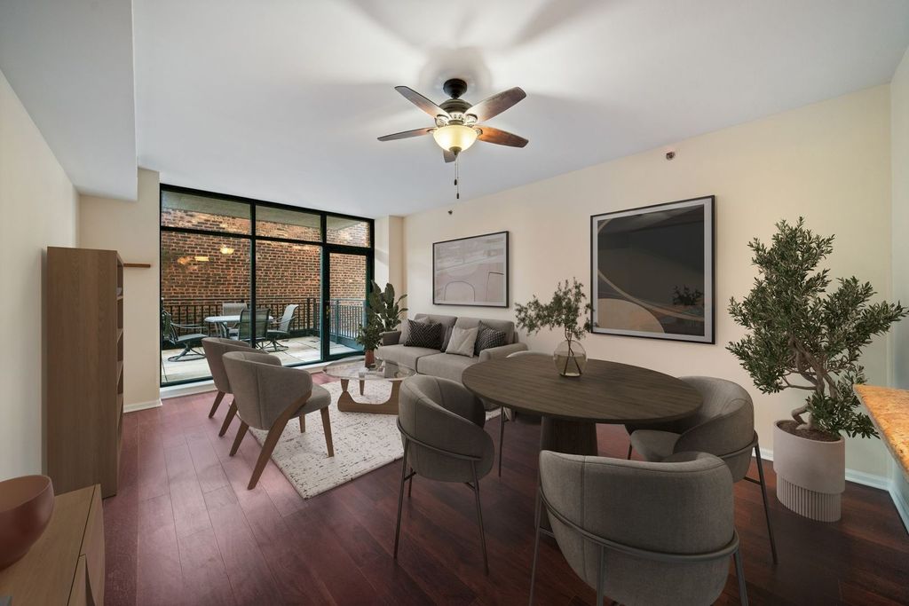 Exceptionally quiet, giant, light-filled 1BR condo with a massive private terrace in an iconic River North location. Beautifully upgraded with a tasteful style the unit features a superb layout with a large living/dining room open to a chef's worthy kitchen with breakfast bar, granite countertops, stainless steel appliances, new dishwasher, hardwood cabinets and built-in two stage pot-rack. The large private bedroom with big picture-window has two generous closets including a walk-in and a deep hall closet. Outstanding storage throughout with a large hall closet, extra kitchen cabinets and additional space in the utility and laundry closets. Excellent condition, freshly-painted, clean and move-in ready. Central HVAC and in-unit laundry as well. Boutique 24hr doorman building, pet-friendly, with an on-site manager, a full-sized gym, bike room and lobby lounge. Indoor heated garage PARKING SPACE INCLUDED. Walking distance to the Montgomery Ward riverfront park, a water taxi stop, East Bank Club, top Chicago restaurants, local shops, public transportation, and downtown offices and attractions, plus easy access to I90/I94. Previously rented, now vacant and easy to show.