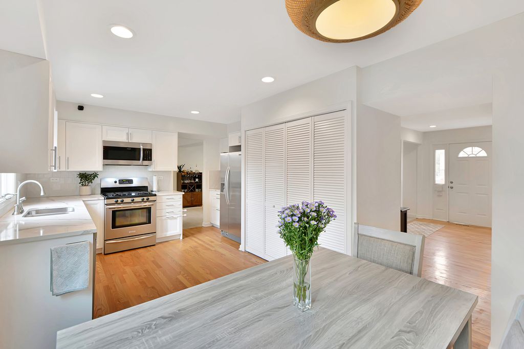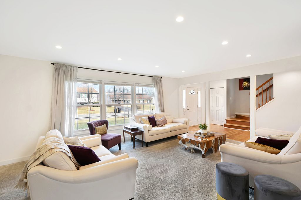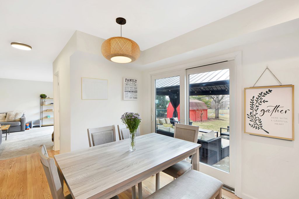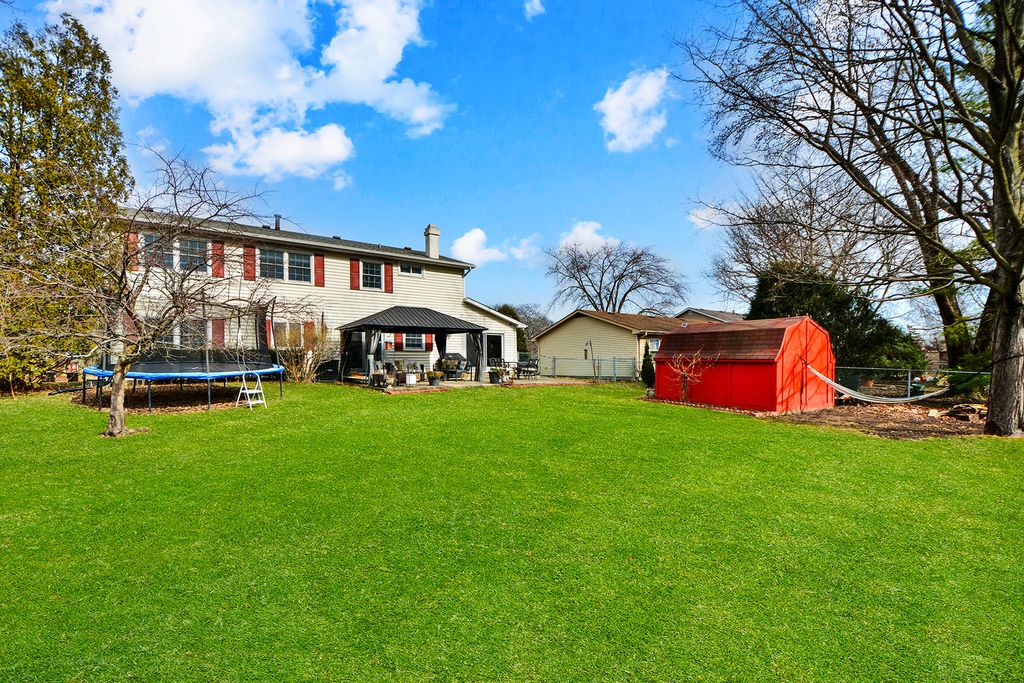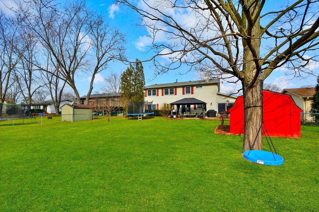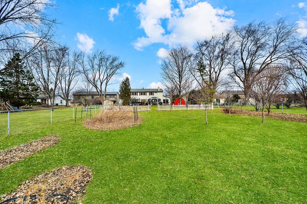 From the moment you step inside, the flow of this home immediately draws you in. The living room and dining room combination creates a seamless, open feel that makes both everyday living and entertaining effortless. Many windows have been updated, enhancing both light and efficiency. Just beyond, the sizeable white kitchen becomes the heart of the home. Crisp cabinetry and stainless steel appliances create the perfect environment for everything from weeknight dinners to holiday gatherings. The kitchen opens beautifully into the family room, where a classic brick fireplace anchors the space and invites cozy evenings, relaxed weekends, and meaningful conversations. Five spacious bedrooms provide flexibility for family, guests, or a dedicated office space. The backyard offers a peaceful retreat highlighted by a charming gazebo, the perfect setting for summer evenings, morning coffee, or hosting friends outdoors. The oversized backyard also features a fruitful orchard of various fruits such as apples, peaches, raspberries and cherries. A newer driveway and underground drain system add function and long term value, while the recently replaced roof provides added peace of mind. Major mechanicals include newer furnace and air conditioning for year round comfort. With its thoughtful layout, inviting spaces, and desirable Lake Zurich location, this is more than a house... it's a home designed to be lived in and loved.