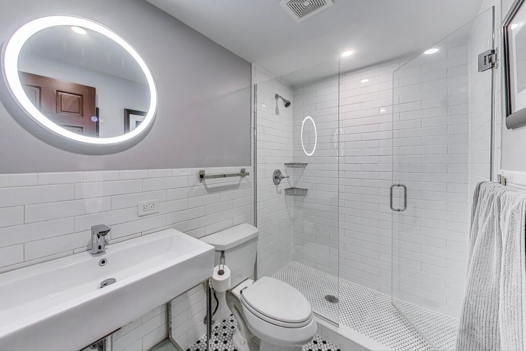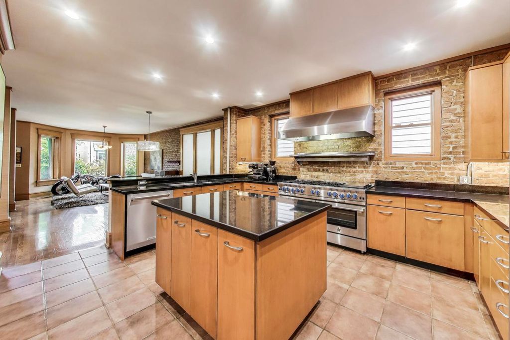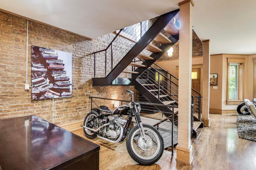 One-of-a-kind transformation of a classic Chicago brick two-flat into a custom-designed single-family residence in the heart of Northcenter. Affectionately known by neighbors as the "Gas-Light House," this distinctive 3-level home blends early 1900s craftsmanship with exceptional modern upgrades. You are welcomed into the dramatic two-story entry gallery featuring a 20-foot exposed brick wall and hand-crafted steel staircase-a showcase of timeless masonry and custom design. The open-concept main level offers generous living and dining spaces, complete with a bar/office nook and space to display your prized collectibles or vintage motorcycles. The chef's kitchen is truly exceptional: a 10-burner Lynx Star Pro range with double oven, stainless Viking commercial-grade double hood, Sub-Zero refrigerator and separate freezer, granite-topped center island, custom buffet, and butler's pantry. A hidden powder room with Art Deco flair completes the main level. Upstairs, the front bedroom is bathed in natural light and served by a full vintage Kohler bath featuring a clawfoot soaking tub. The rear of the upper level is dedicated to the luxurious primary suite, with sound-absorbing upholstered walls, built-in surround sound, and a spa-inspired bath with Jacuzzi tub and glass-enclosed shower-featured on HGTV's "Love That Bath". The custom walk-in closet offers extensive storage with accent lighting and built-ins. The lower level includes a private home gym, guest bedroom, full bath, and a bright, well-appointed laundry room with high-end appliances, cabinetry, utility sink, and hanging space. At the rear of the home, the stunning family room addition pays homage to Prairie and Arts & Crafts architecture-with rich wood-paneled walls, beamed ceilings, gas fireplace, stained glass windows, and period-perfect lighting. Glass doors open to a beautifully landscaped patio beneath a soaring pergola, ideal for outdoor entertaining. The heated 2019-built garage is more than just a parking space: it includes a lofted storage level, workshop power supply, fire-resistant Hardy board siding with wood shake accents, and reclaimed original windows and doors. Outdoors, enjoy a built-in grilling station with a stainless Lynx rotisserie infrared grill, storage, and a peaceful koi pond. Mechanically superb, the home features dual-zone HVAC, new windows, a rubber roof, gutter heaters, upgraded drainage, and a comprehensive flood protection system-all sure to impress your inspector. Priced accordingly for the 3-bedroom layout. Located on one of Northcenter's most coveted blocks, just steps to award-winning Bell School, Lane Tech, parks, restaurants, shops, theaters, public transit, Wrigley Field, Lake Michigan, and the North Branch Riverwalk. This home would be extraordinary anywhere-but here, it's exceptional. Come experience it for yourself.