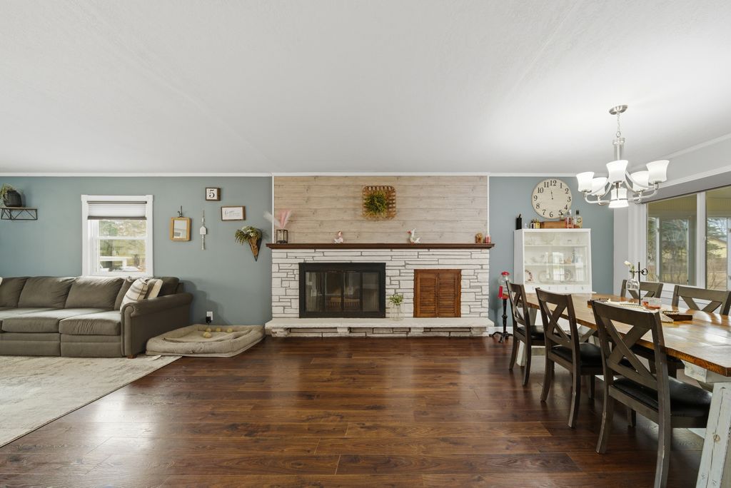 Welcome home to this beautifully maintained 3 bed, 2.5 bath ranch situated on a desirable corner lot, offering comfort, functionality, and room to grow! This property features an oversized detached garage, fenced in yard, and finished basement, perfect for entertaining, hobbies, or additional living space. Step inside to find a warm and inviting layout complete with a cozy fireplace and an enclosed sunroom for year round relaxation. The finished basement offers incredible flexibility and includes rough-in plumbing for a future bar or whatever your imagination can create! You will appreciate the modernized kitchen, primary bedroom, and bathrooms. While other recent updates provide peace of mind, including but not limited to, Radon mitigation & water softener (2025), Sewer line, asphalt, and front picture window (2024), Furnace (2023), Water heater (2021), & fence (2020). This move in-ready ranch blends thoughtful updates with timeless charm. Don't miss your opportunity to make it yours!