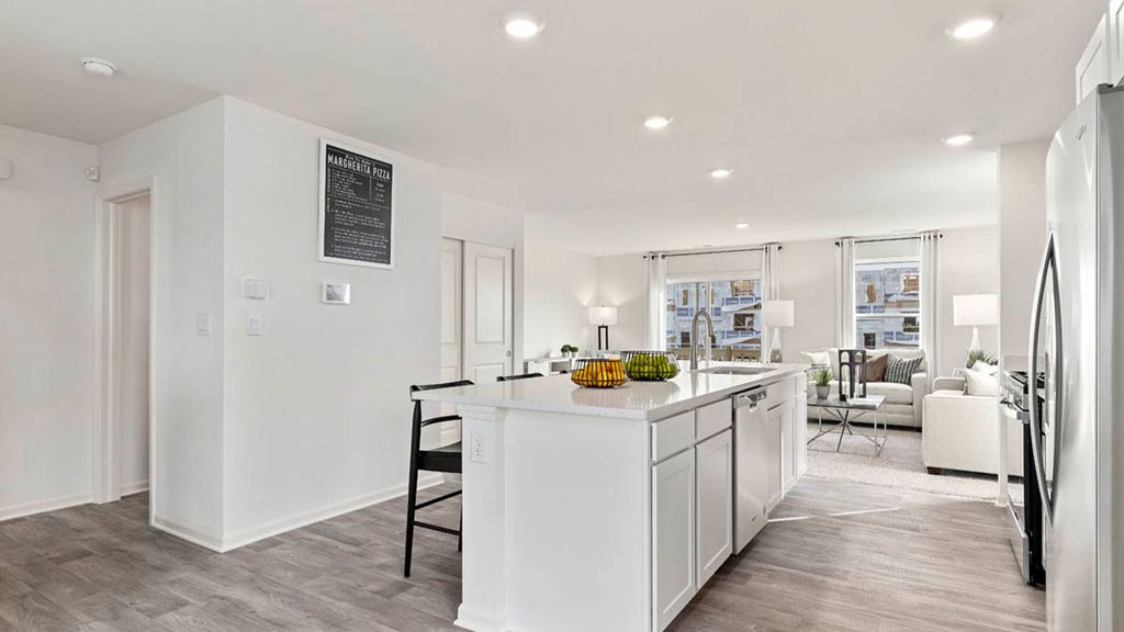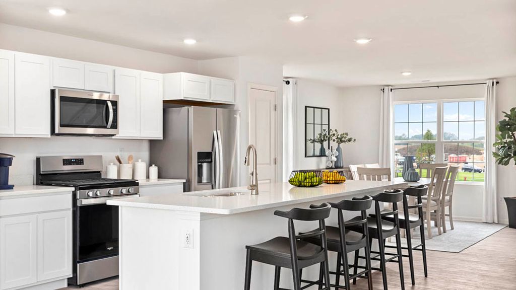 Discover yourself at 1334 Foxglove Dr, a beautiful Townhome in The Grasslands community. This townhome will be ready for a late Summer move-in! Homesite includes a fully sodded yard that is maintained throughout the year, as well as snow removal. This Garfield townhome plan offers a well-designed spacious 1,756 square feet of living space with 3 bedrooms, 2.5 baths, and finished flex room. As soon as you step inside from your spacious two car garage entrance, you'll be greeted by the finished flex room, which is perfect as a den, 2nd living room or playroom. Walking up to the main level, you will find this home's open concept living space. The expansive designer kitchen overlooks both the front dining and back great room areas, making it the ideal space to entertain. Step outside onto your balcony, relax and enjoy your morning coffee. Additionally, your kitchen features Shaker designer cabinetry, a spacious island with QUARTZ countertops, and pantry. Enjoy your large primary bedroom with a walk-in closet and connecting en suite bathroom. The rest of the upper level features a laundry room, secondary bedrooms with a full second bath, and linen closet. You'll also find luxury vinyl plank flooring throughout the main level living space, bathrooms, and laundry. Impressive innovative ERV furnace system and tankless water heater round out the amazing features this home has to offer! All Chicago homes include our America's Smart-Home Technology, featuring a smart video doorbell, smart Honeywell thermostat, smart door lock, Deako smart light switches and more. Photos are of similar homes and model home. Actual home built may vary.