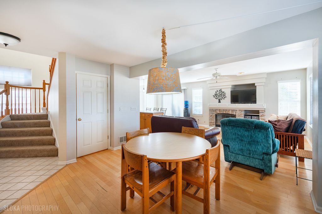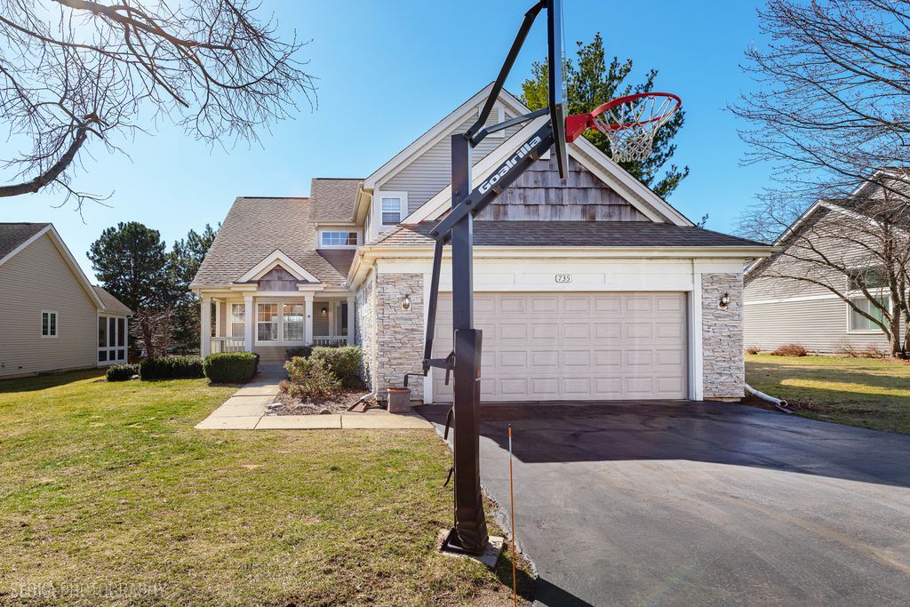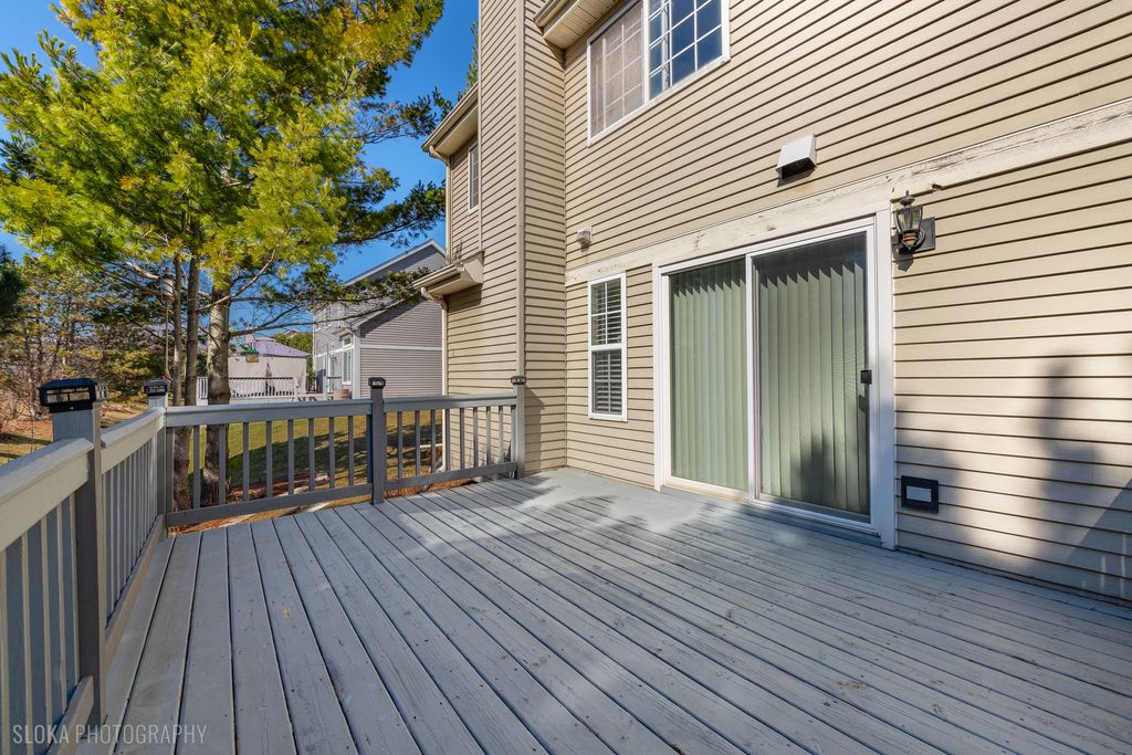 Rarely available and highly sought after Wyndmuir home with stunning curb appeal and great cul-de-sac location! This home is bigger than it looks with almost 3,500 SF of finished living space. The welcoming entrance from the covered front porch is the perfect way to greet guests. So much light shines into the open concept main level. The brilliant design allows great flow around the heart of the home - the spacious kitchen with large island and eat in space. Spend family time, host guests or just relax in the cozy family room beside the stone fireplace, or for larger gatherings extend to the living and dining rooms. Upstairs fall in love with the primary suite, bedroom and office/exercise room/sitting area, private primary bath with soaking tub and walk-in closet. The second and third bedrooms complete the second floor. But that's not all, there is another bedroom, rec room and storage space in the finished basement. This area could be used as a 4th bedroom, a guest room, office, exercise room, play room...there are so many possibilities! In the warmer months, the living space extends to the private back deck. Enjoy the outdoor space with no neighbors behind! Some fresh paint, neutral decor, charming curb appeal, front porch, and extended driveway! Close to town, Metra, Prairie Ridge High school, and all the amenities Crystal Lake has to offer. Enjoy outdoor maintenance free living while the HOA takes care of lawn maintenance and snow removal for you! So many updates including some fresh paint (2025), driveway sealed (2025), new garage door (2021), new garage door hardware (2025), roof (2017ish), deck painted (2024), new water heater (2022), carpet and flooring newer (2018), dishwasher (2018), washer (2022)...there is nothing to do but move in and enjoy this home, and the Crystal Lake area!