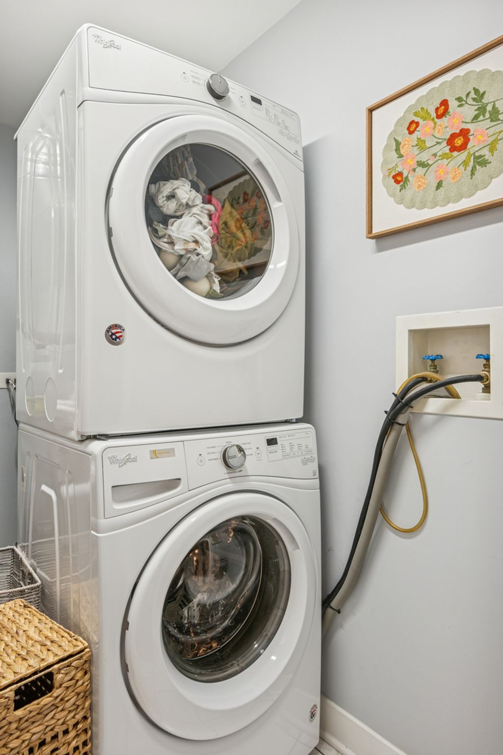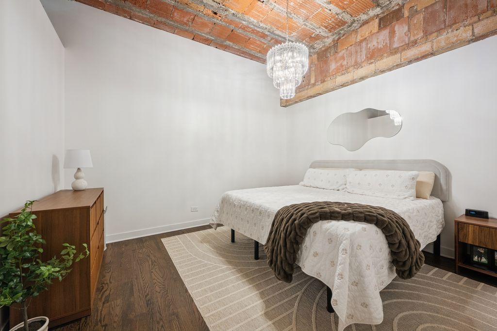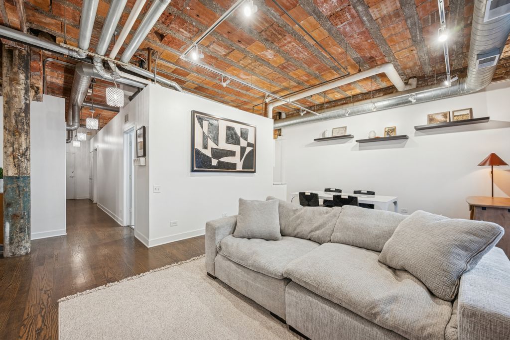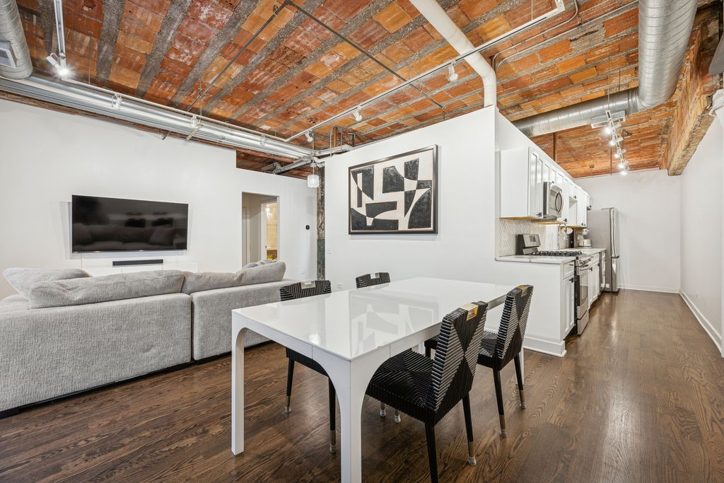 Beautifully updated West Loop loft in the iconic Daily News Building. This home features soaring exposed terra cotta ceilings, exposed brick, and mocha hardwood floors throughout. Stunning, renovated kitchen and baths with all newer appliances. Spacious bedrooms offer organized walk-in closets and en-suite baths off both bedrooms with dual vanities, PLUS a powder room off the living area! Additional features included a dedicated laundry room with full-size washer and dryer and hardwood floors throughout. Completely move-in ready. Unbeatable location near Fulton Market dining and shopping, Target - West Loop, Skinner Park, Madison Row, CTA, expressways, and easy access to the Loop and Metra. Close to highly rated Skinner Elementary School. Heated garage tandem parking included in the price.