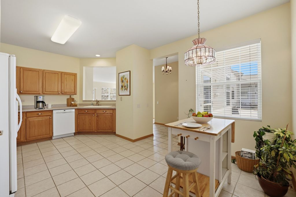Enjoy maintenance free living in this charming Del Webb Osceola~The Osceola is the most popular & largest townhome of the Del Webb original townhomes~Spacious living & dining room layout with high ceilings & bay window that create an open airy feel with slider to the deck~2 Bedrooms PLUS a Den for a home office or a quiet private retreat~The Kitchen is large & bright featuring Oak cabinets with under cabinet lighting, ceramic tile, newer Bosch Dishwasher, oven & microwave~Primary Suite includes ceiling fan, Hunter Douglas silhouette blinds, walk-in closet & linen closet, bathroom w ceramic tile & walk-in shower~New roof & gutters~HVAC 2017~Water Heater 2024~Laundry sink~Come join the fun in Sun City's 55 & over resort like community with all of the amenities~2 outdoor pools~2 exercise facilities~Walking & bike trails~Indoor walking track~Pickleball, tennis, & bocce courts plus so much more!