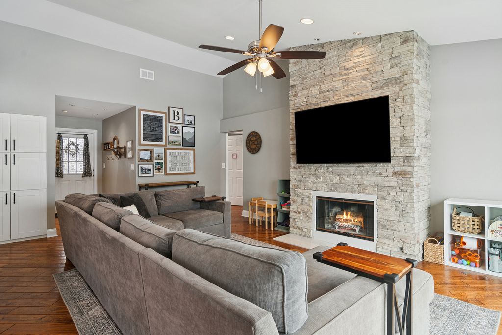 Highest and Best Due at 12:00, March 1st. This stunning ranch-style home features an expansive, open-concept layout and a fully remodeled kitchen outfitted with quartz countertops and sleek stainless steel appliances. Elegant bamboo floors and recessed lighting run seamlessly throughout the home. The living area offers a warm, inviting atmosphere with a gas-start fireplace. The generously sized primary suite includes a recently renovated bathroom boasting a roomy walk-in shower. Downstairs, you'll find a partially finished basement plus an oversized concrete crawl space ideal for extra storage. Outside, a spacious patio makes entertaining easy, while the fenced backyard provides a safe space for children or pets to play.