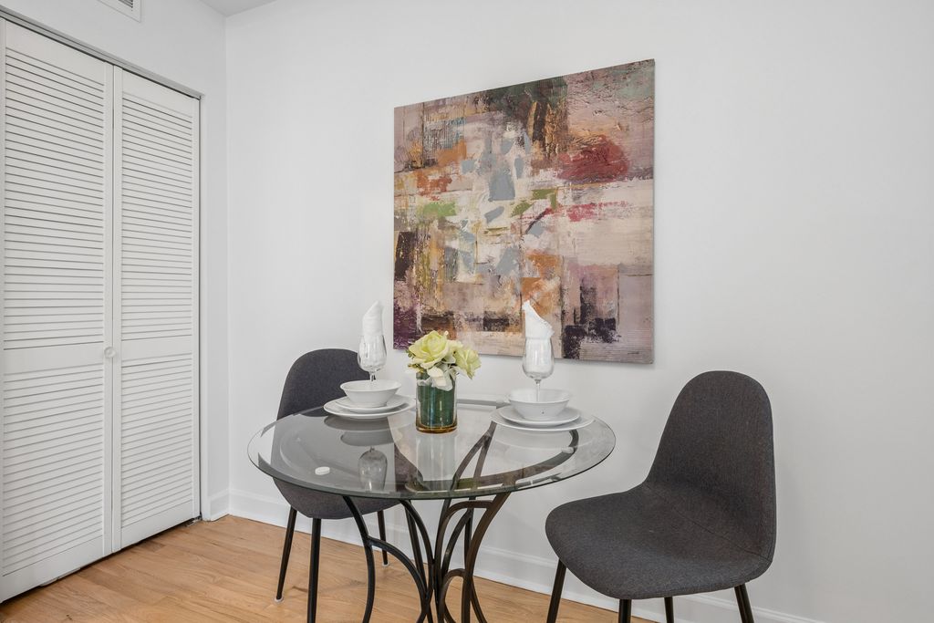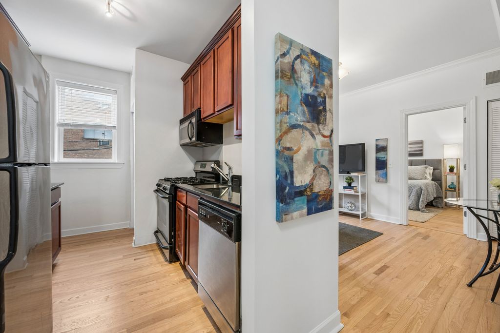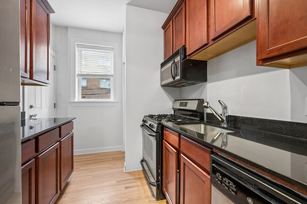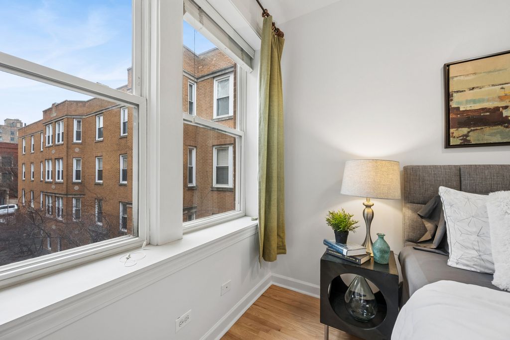 East Lakeview's classic courtyard walk-up at its best. Polished, move-in ready two-bedroom, one-bathroom condo offers a smart split floor plan and a quiet rear-of-the-building location. The kitchen features stainless steel appliances, 42-inch cabinets, and granite countertops. Refinished hardwood floors, fresh paint, and well-lit living spaces create a warm, inviting feel. Elfa-organized closets, in-unit washer/dryer and central heat and air add everyday convenience. Additional storage and bike storage in the lower level. Just steps from the lakefront and all it has to offer, Mariano's, Whole Foods, top dining, and public transit.