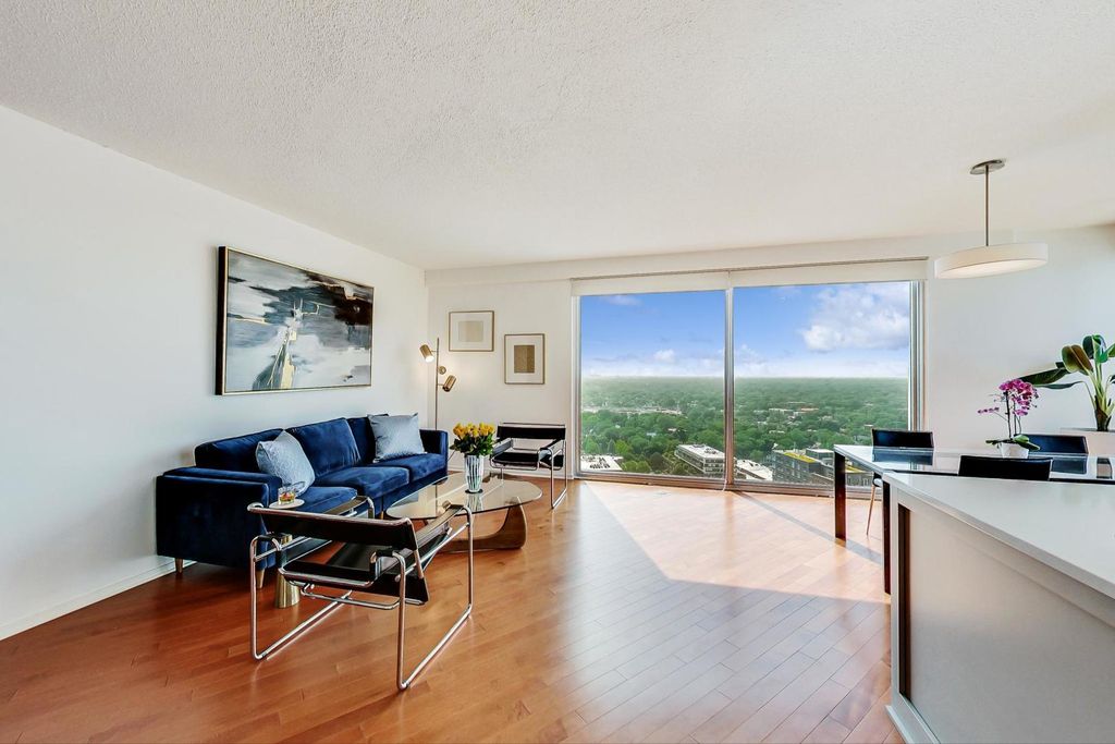 Rare PENTHOUSE UNIT: Welcome to "Heavanston" Great opportunity to live in one of the tallest buildings in Downtown Evanston. The building is at an angle and permits sweeping views of the lake & Northshore not experienced anywhere else in the area. Enjoy infinite views of the lake from this spacious 2 bedroom 2 bath unit with an open concept and light-filled rooms from every room. Appointed with hardwood floors throughout, floor-ceiling windows, stainless steel Bosch kitchen appliances, a huge walk-in closet, a double sink vanity bathroom in the primary suite, in-unit laudry, Indoor heated parking space and a storage locker. Approaching 9-foot ceilings. Basic Cable/Internet included. Fantastic transit-oriented real estate with two converging trains and local stops just steps away. Well-managed building with amenities that include a fitness center, indoor heated pool, Jacuzzi, 24-hour door staff, indoor heated parking garage, a 4th-floor deck with Room & Board patio furniture, a business center, and a bike room. Evanston is one of the Chicago area's premier & sought-after neighborhoods with easy access to the Lakefront, beaches, Music venues, wellness spas & Northwestern Hospital, and highly-rated restaurants and shopping. LEASE ENDS MAY 15, 2026. E-charging option available