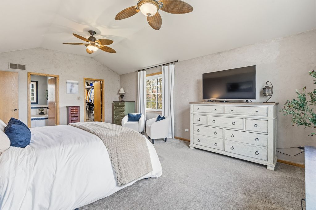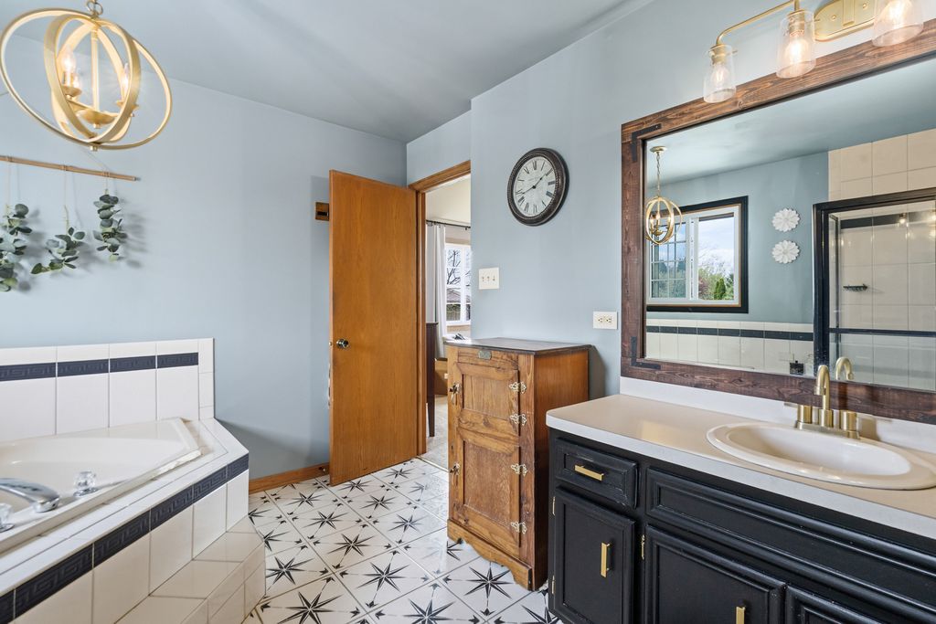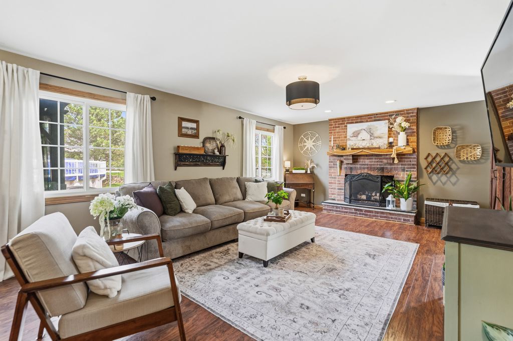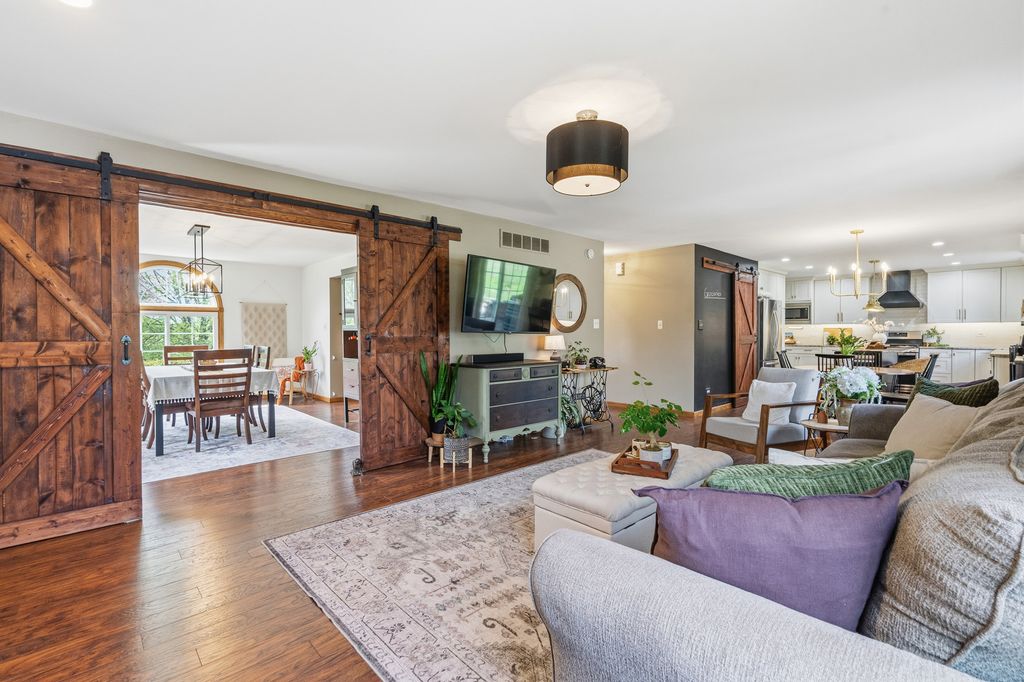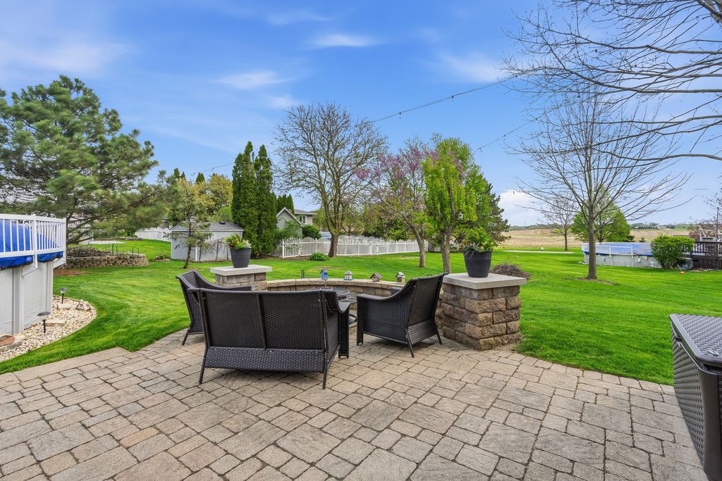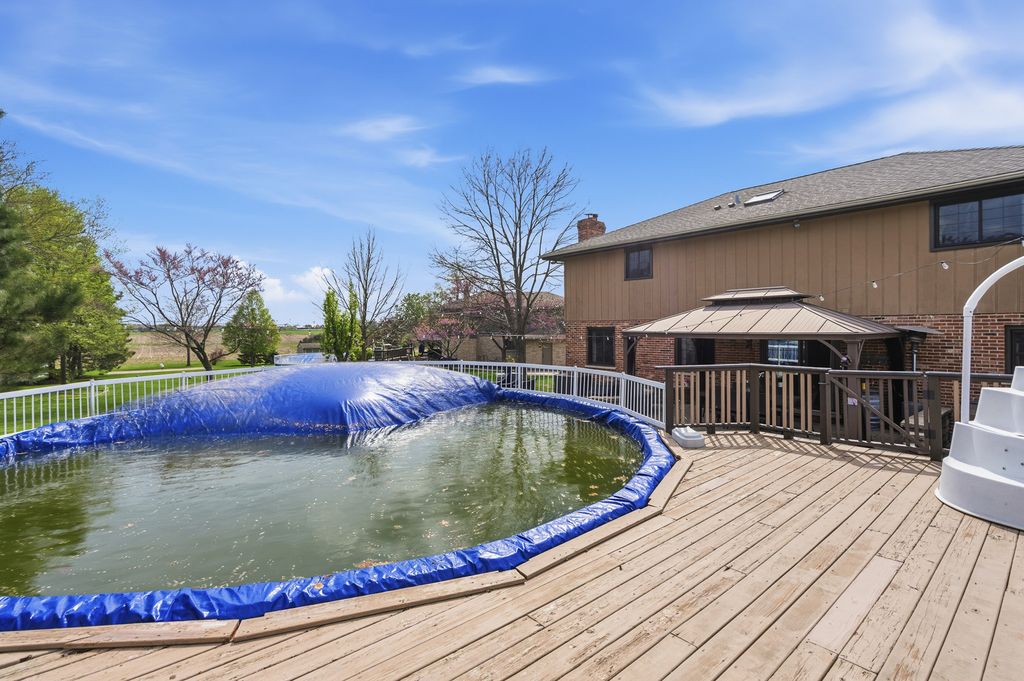 This stunning, lovingly maintained residence-proudly cared for by its original owner-showcases exceptional upgrades and timeless elegance throughout, beginning with a breathtaking newly remodeled kitchen boasting 42-inch white cabinetry with crown molding, soft-close features, gleaming granite counters, subway tile backsplash, pantry closet, stainless steel appliances, recessed lighting, and a spacious island overlooking the breakfast area and picturesque backyard oasis featuring an expansive paver patio, illuminated gazebo, 18-foot round pool encircled by a deck, hot tub, shed, and lush professional landscaping; the main level also offers a charming barn door leading to the laundry room, a warm and inviting family room with cozy gas-log fireplace, sun-filled formal living room, and an impressive formal dining room perfect for hosting large gatherings, along with a beautifully updated powder room adorned with a stylish shiplap wall, while the three-car attached heated garage includes a pull-down staircase to a finished attic for added versatility; upstairs you'll find a spacious vaulted master suite with walk-in closet and luxurious bath featuring whirlpool tub and separate shower, a second full bath with antique vanity, and a secondary bedroom with walk-in closet, and the finished basement is ideal for related living with a fifth bedroom, half bath, extensive wainscoting, second kitchen, recreation room with bar, workshop, and abundant storage, making this extraordinary home a rare blend of comfort, craftsmanship, and upscale living. New main level wood laminate flooring & carpeting 2nd level (2018), furnace and hot water heater (2023), roof (2006), newer windows, and AC (2012), sliding glass door (2 years), kitchen (3 years).