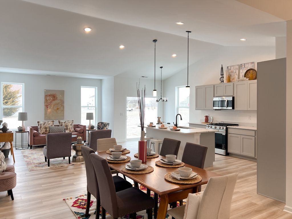 Move-in ready new villas in a great new location in Robinson Farms! The Anderson is well appointed plan with luxury included features with plenty of space with 3 bedrooms. This open floorplan can be suited for almost any need with professional curated options for finishes.. Whether you enter through the covered front porch into the foyer or through the mudroom off the garage you will quickly see the open living spaces that feature luxury vinyl plank flooring that flows into the great room. The added volume the vaulted ceilings offer in the great room open this home up even more with the option to add a fireplace to provide even more warmth to this space. The luxury kitchen overlooks this space with a large island and plenty of room for a dining area so you have plenty of room for cooking and gatherings. The three bedrooms are split providing additional privacy, with a private owner's suite that boasts a large walk-in closet and double bowl sinks in the bathroom.