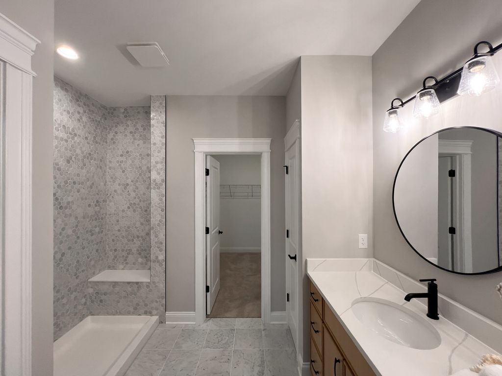 Proposed new construction. The stunning Aspen ranch home is one of our fan favorite floorplans! Designed with the Bettendorf in mind, this plan is a split-bedroom, one-story home that features four (4) bedrooms, two (2) baths, a full basement and an oversized 2-car sideload garage. The beautiful eat-in-kitchen features a large, angled island with a spacious breakfast bar overlooking the great room. With a surplus of cabinets and stunning countertops, there is plenty of storage and preparation space for the cook or cooks. The dining area is openly located alongside the kitchen and great room providing the ideal layout for entertaining. Gather around the covered back porch or get situated beside the 4 beautiful windows in the great room overlooking the back porch and backyard. The Master suite boasts a captivating tray ceiling and is privately tucked away on its own side of the home, therefore making it the perfect way to begin and end your day. Also featuring a perfectly thought-out private bath with a large walk-in shower and expansive vanity. Which then leads you to a spacious walk-in closet making preparing for the day a seamless task in one spacious location. With multiple included features and dozens of customizable options, you can build your new Aspen the way you want it. Pictures of previously built homes, some with upgrades.