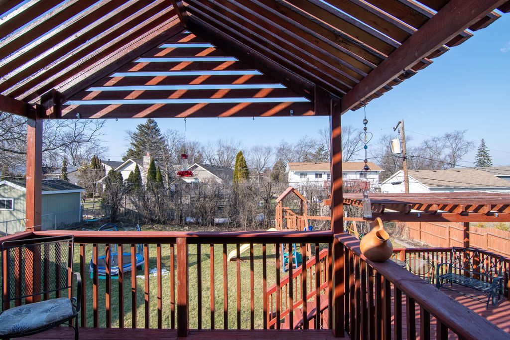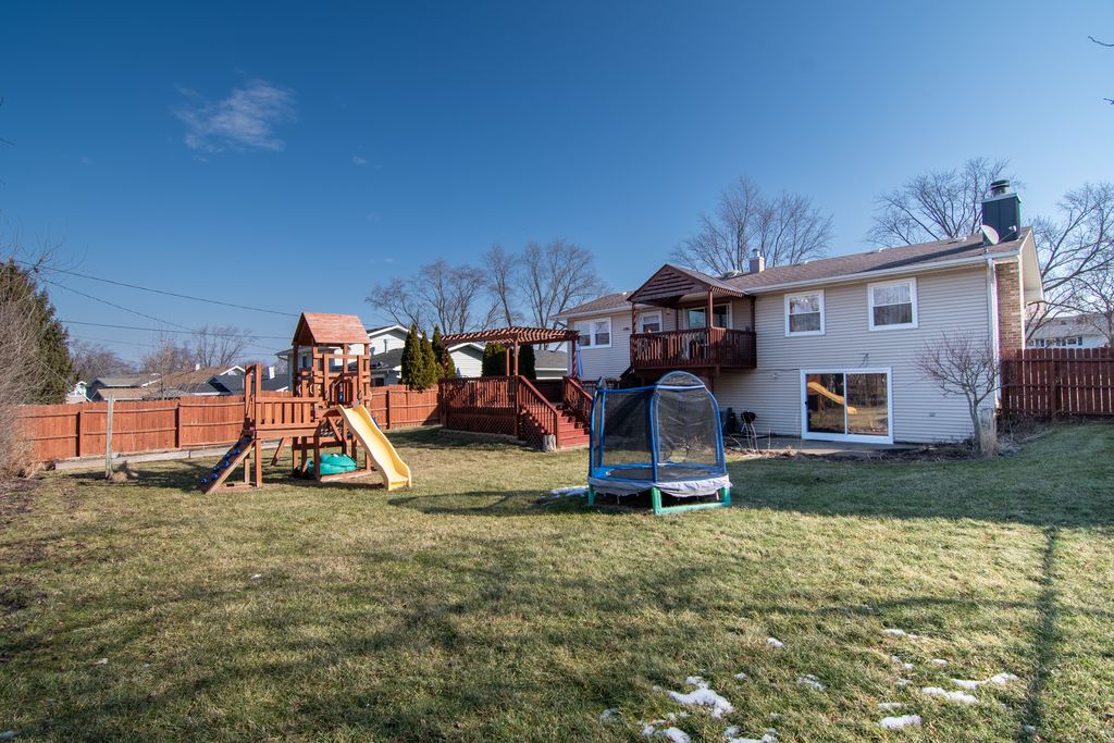 Welcome to this charming home set in the Butterfield neighborhood! From the moment you pull up to the inviting red front door and manicured lawn, you'll feel the warmth this home radiates - and it only gets better inside! The sun-drenched upper level boasts a spacious floorplan with gleaming hardwood floors, a dining room with elegant chandelier lighting, and an updated kitchen with ample solid wood cabinetry, stainless appliances, a solid surface counters, breakfast bar, and direct access to an incredible deck complete with a pergola - perfect for entertaining! The lower level offers a generous, comfortable family room with a classic brick fireplace and oversized slider to the patio and large, private, fenced backyard, while the updated bathroom impresses with granite countertops and a beautifully tiled walk-in shower. The backyard is fully fenced and is a family paradise. This well-maintained home blends classic character with everyday comfort - don't miss your chance to make it yours! Superb location for access to Route 355 & I-88! Subdivision park and grade school with bus to middle and high schools! Great schools - love where you live!