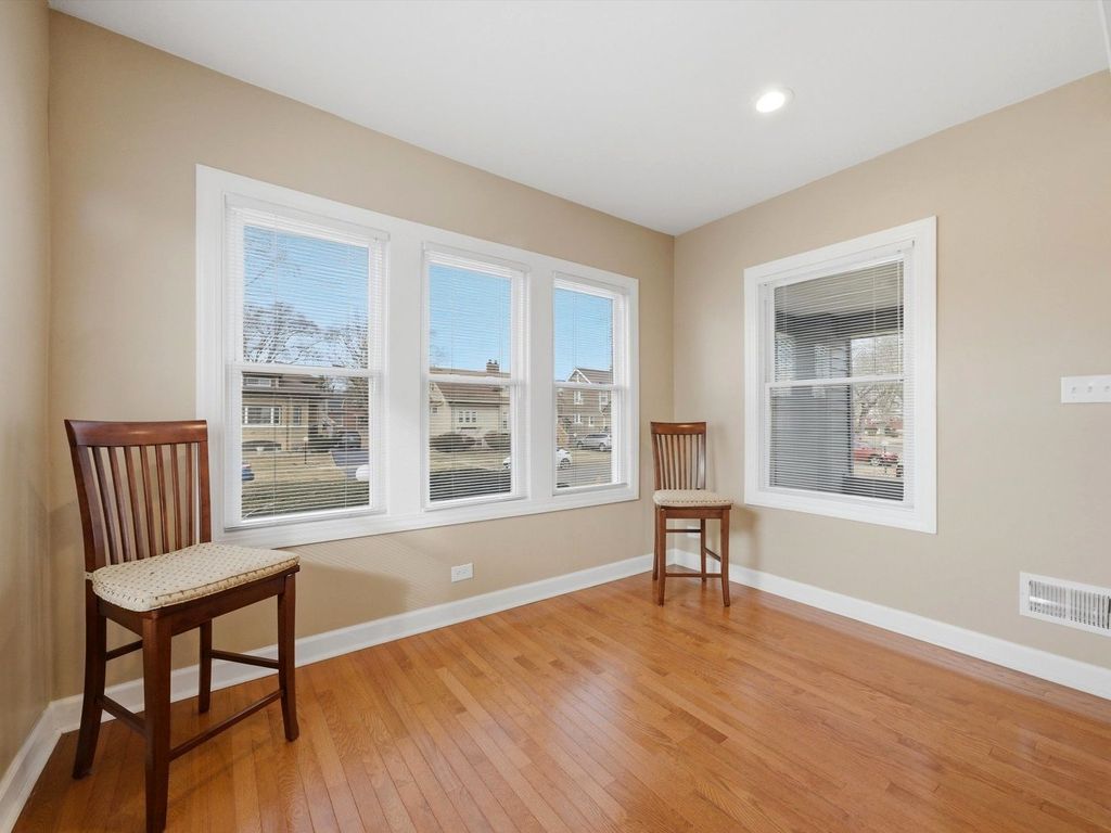 Welcome to this beautifully updated home, featuring hardwood floors and recessed lighting throughout. Spacious formal living and dining rooms offer the perfect setting for everyday living and special occasions alike. The dining room is ideally positioned for hosting holiday gatherings or intimate dinners with ease and elegance. The kitchen is an exceptional space, featuring quartz countertops, stainless steel appliances, and a generous walk-in pantry that offers both style and functionality. Just beyond, an expansive screened-in porch extends your living space outdoors, overlooking a peaceful, tree-lined backyard-perfect for relaxing mornings or entertaining guests. Upstairs, hardwood flooring continues throughout the second level. The spacious primary suite offers a large walk-in closet, while bedrooms two and three share access to a beautiful three-season sunroom-an extra space ideal for lounging, working from home, or simply enjoying serene backyard views. A convenient second-floor laundry room adds everyday practicality and can be relocated back to the basement if you prefer. The full basement includes a half bath and provides endless possibilities-create a recreation room, home gym, media space, or maintain it as exceptional storage. With three bedrooms, one full bath, two half baths, a two-car garage, and additional under-porch storage, this home offers a smart, functional layout for comfortable living. Ideally located with easy access to I-290, I-80, I-294, and just minutes from shopping, dining, and entertainment, and O'Hare Airport. Move-in ready and thoughtfully upgraded, this is the one you've been waiting for.