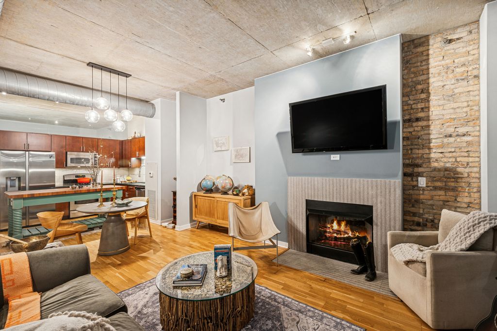 This is the River North property you have been waiting for, located right on the river and park with unbelievable South skyline and water views. The large kitchen is the heart of this home with its generously sized custom butcher block island, soapstone counters, deep farm sink and separate bar area. This stylish renovation features designer touches throughout, Porcelanosa fireplace surround, brick floor and wall accents, beautiful natural fiber wall covering, motorized window treatments and more. Soft as a slipper newly installed wall to wall sisal in both bedrooms. Both full bathrooms are newly renovated and pristine! 2nd lofted bedroom is fully enclosed. South facing private balcony enjoys A+ views! In unit laundry. Full service building with 24 hr. door staff, gym, on site management. Garage parking additional. We look forward to your visit!