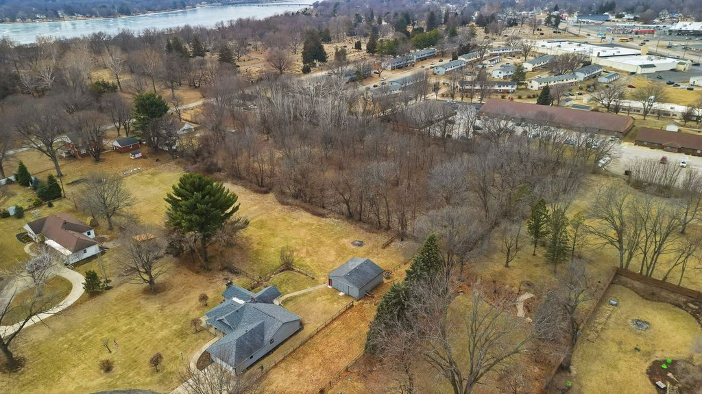Well-maintained three-bedroom, two-bath ranch located in a highly desirable in-town setting, offering the rare combination of privacy, space, and convenience. Situated on just over 2 acres, this property feels like a park-like retreat while being minutes from everything. The exterior features beautiful, mature landscaping including weeping mulberries, arborvitae privacy hedges, red burning bushes, butterfly bushes, daisy beds, a dogwood tree, and a ginkgo tree. A 32x32 barn with an office and two horse stalls adds incredible versatility for hobbyists, storage, or animals. The home has seen numerous updates, including vinyl windows, a newer roof, new patio sliding doors, and new concrete patios. Major mechanicals and systems have been professionally maintained, including updated electrical and plumbing, septic pump, and water heater. Two furnaces and two air conditioners (installed around 2012) have been regularly serviced by professionals. Inside, the primary suite offers multiple closets, a walk-in shower, and private patio access through its own sliding door. The second bathroom has been freshly updated. The kitchen features tile flooring and granite countertops and opens to the dining and living areas, creating a comfortable, functional layout. The living room includes a newer wood-burning fireplace and two additional sliding doors that lead out to the patios-perfect for indoor-outdoor living. Enjoy the peace of country-style living right in the middle of town, just minutes from Sinnissippi park.