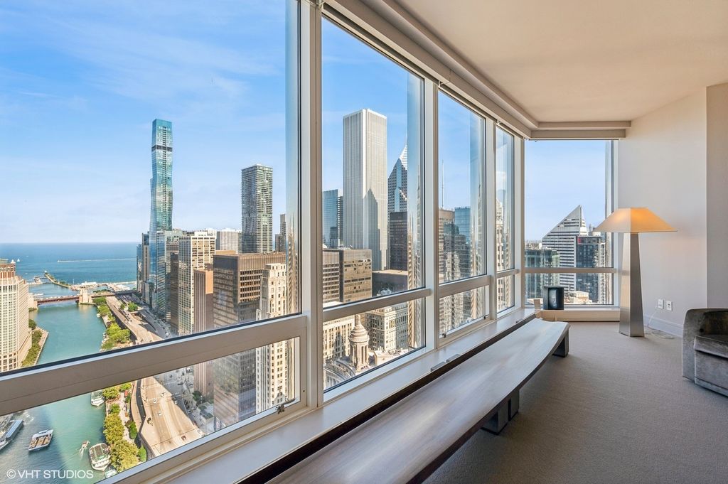 Stunning 2,063sqft two-bedroom, two-and-a-half-bathroom luxury residence at Trump Tower Chicago. This beautifully upgraded home features expansive floor-to-ceiling windows offering breathtaking river, lake, and city views throughout. The open chef's kitchen is appointed with Snaidero cabinetry, high-end stainless steel appliances, granite countertops, and a large breakfast bar perfect for entertaining. The spacious primary suite offers a spa-caliber marble bathroom with dual vanities, deep soaking tub, and separate shower. Generously sized second bedroom with en-suite bath and ample closet space. Additional highlights include wide-plank hardwood floors, custom lighting, motorized window treatments, an elegant powder room, and abundant storage. Enjoy five-star amenities including a world-class spa, fitness center, indoor pool, 24-hour concierge, and in-room dining. Prime location steps to the Riverwalk, Michigan Avenue, dining, shopping, and entertainment. Luxury living at its finest.