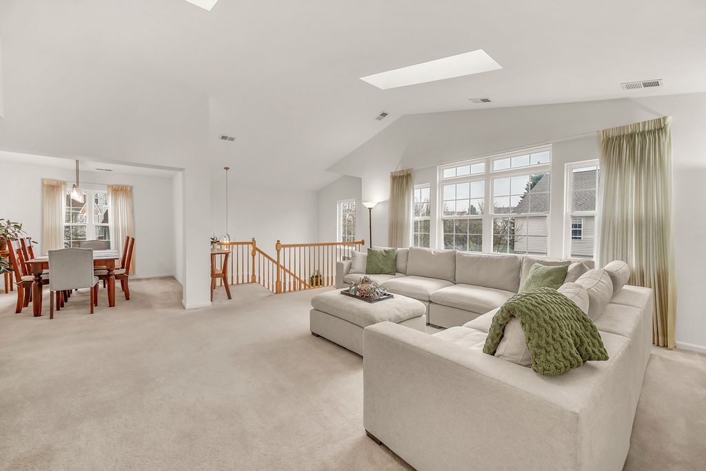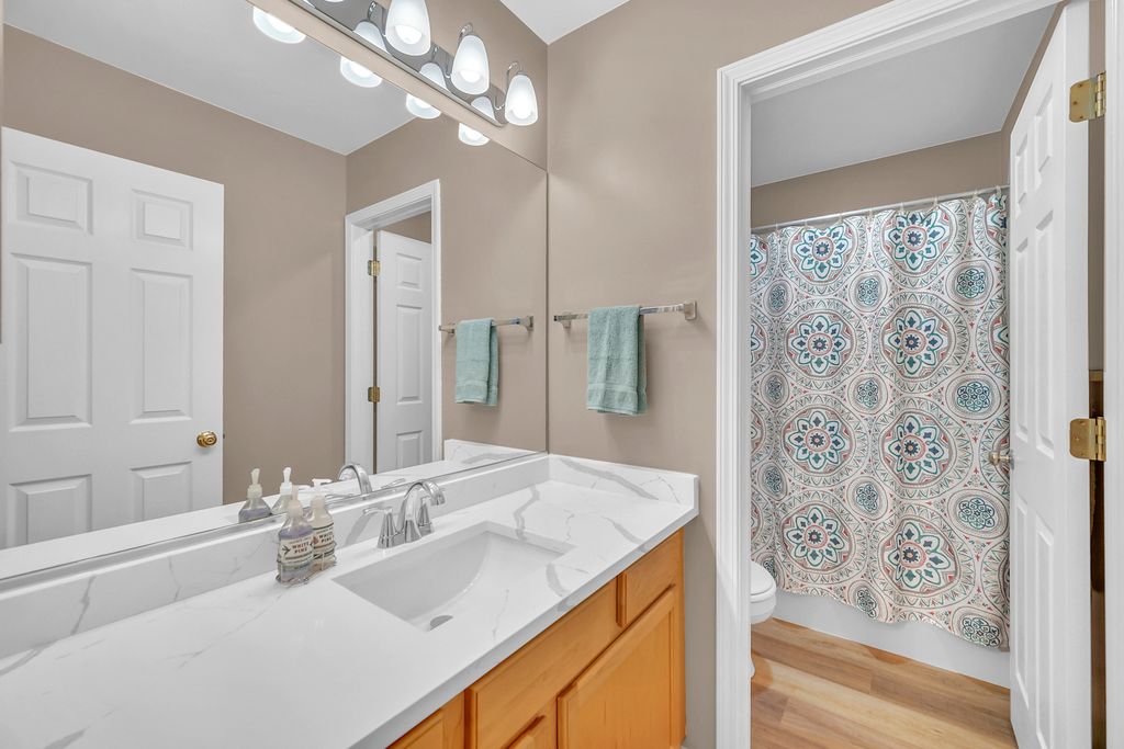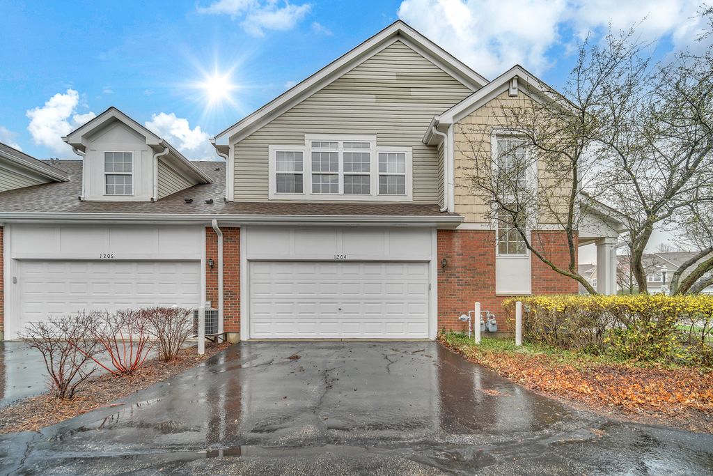 MOVE-IN READY 2ND FLOOR BRIGHT BEAUTIFUL 3 BR 2 BATH 2 CAR HOME! SUNNY, SPACIOUS 3/2 RANCH STYLE END UNIT! UPDATED QUARTZ KITCHEN, QUARTZ BATHROOM COUNTERS, BRAND NEW FAUCETS, 2 STY FOY W/GAR ACCESS. HUGE VAULTED LR W/SKYLIGHTS. FORMAL DR. EAT-IN KIT OPENS TO FAM RM W/ELECTRIC ST GAS FP, MEDIA NICHE AND PVT BALCONY ACCESS. VAULTED MASTER STE W/XL WIC . MAIN LVL LAUNDRY. WALK TO PARK! AWARD WINNING DIST 103/103/125! MAINT FREE LIVING W/EXT MAINT, LAWN CARE, TRASH AND SNOW REMOVAL INCL IN HOA! Frigidaire Gas Range: 2013,Dishwashter: 2026 (to be installed),Kenmore Refrigerator: 2014, Frigidaire Microwave: 2026 Whirlpool Washer: 2018, Maytag Dryer: 2021, American Standard Furnace and A/C and Aprilaire Humidifier: 2019, Reliance Water Heater: 2021
