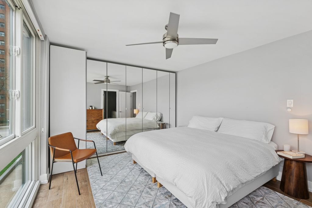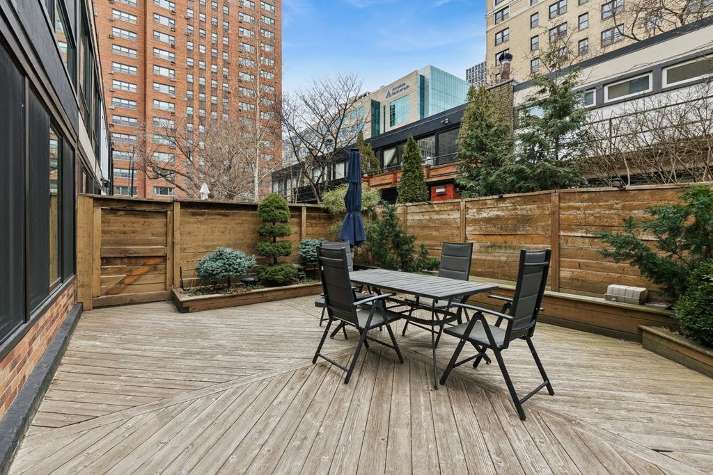 Discover this stunning mid-century modern townhome, a perfect blend of sophisticated design and a practical, highly desirable floorplan built for everyday living. Enter off the sunny, shared courtyard into a welcoming foyer. The heart of the home is the large, bright living room, featuring an impressive wall of windows that opens directly to a private patio with zen garden, creating a seamless environment for true indoor/outdoor living. The updated kitchen is a chef's delight, boasting ample storage, sleek shaker white cabinetry, and a gorgeous waterfall quartz countertop on the peninsula. A separate dining area provides an elegant space for entertaining, while a half bath, laundry closet and large mechanicals/storage closet complete the first floor. The second level offers a desirable three-bedroom, two-bathroom layout. The spacious primary bedroom is a true retreat, featuring a generous wall of closets and an en-suite primary bath with a double-sink vanity and modern finishes. All bedrooms are bathed in natural light, thanks to their own walls of floor-to-ceiling windows. Additional amenities include common green space in the shared courtyard and an extra-long garage parking spot with space for storage or the possibility of a tandem spot for two smaller cars. Location is everything: this home is perfectly situated within the coveted Nettelhorst school district, just a short walk to the lake, parks, retail, dining, and vibrant nightlife.