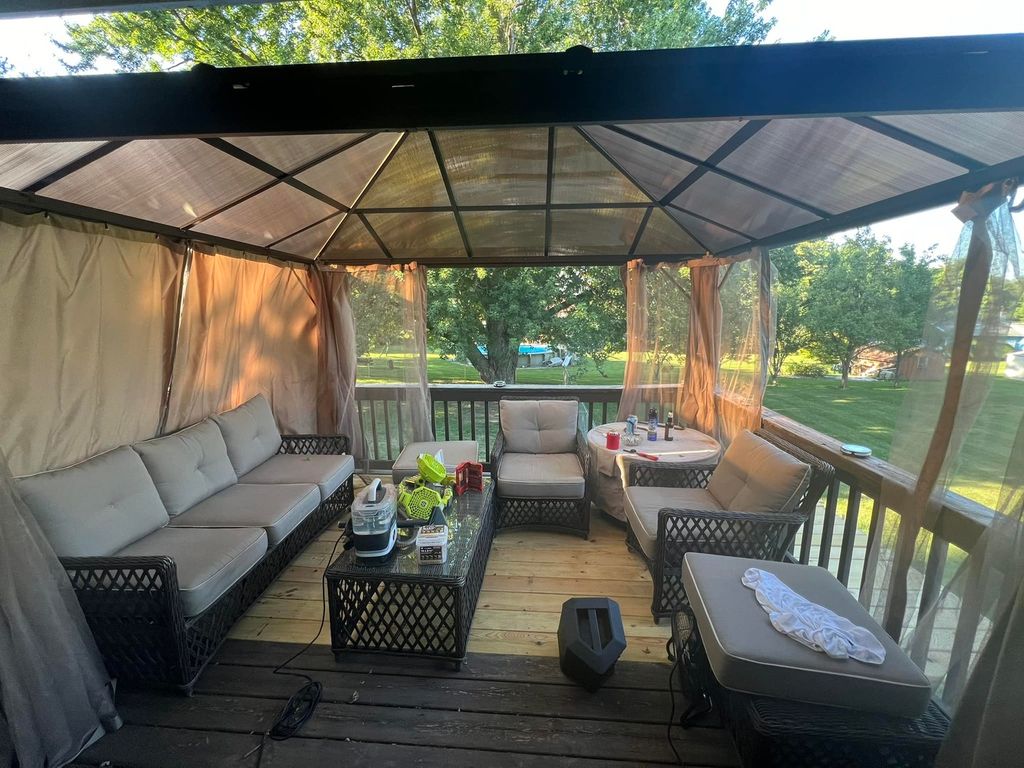 Tri-Valley Schools! Over 1/2 acre lot with lots of trees & storage shed. 2-tiered deck with pergola & patio space. Newer kitchen cabinets with pull-out drawers, corian countertops & tiled backsplash. Additional pantry space. French door off dining area. Master bedroom with double closets. Finished lower-level family room with wood-burning fireplace & built-ins. All stainless kitchen appliances & washer/dryer will remain.