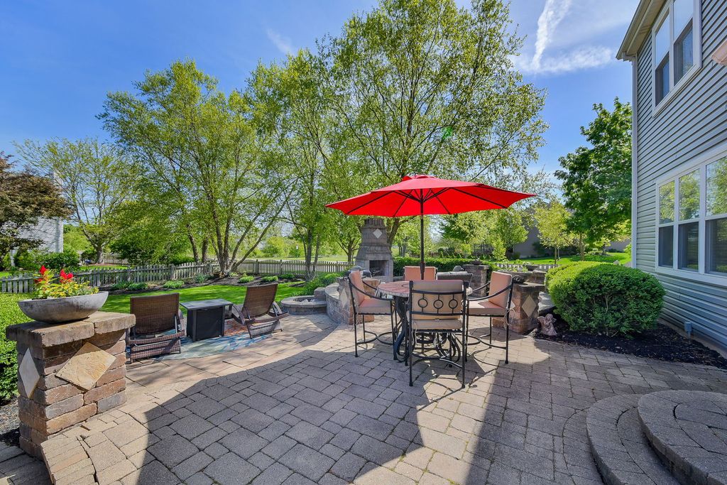 Set on a beautifully landscaped corner lot in sought after Mill Creek, this home pairs thoughtful updates with a layout that lives well, inside and out. The main level is bright, open, and designed for everyday ease. A completely updated (2024) kitchen features new cabinetry, stainless steel appliances, a large island, soft-close drawers/cabinets, and abundant counter and storage space. The current stovetop is electric, with a gas line already in place for those who prefer to convert. The kitchen opens seamlessly to the eating area and family room, where a fireplace and built-in bar with beverage fridge create a natural place to gather. Newly refinished hardwood floors in a light, modern finish enhance the airy feel throughout the main floor. A well-appointed laundry room with custom cabinetry keeps things organized, while a flex room with glass double doors offers the versatility of a home office, lounge, or study, with privacy when desired. Upstairs, four bedrooms include a spacious primary suite with an enormous, extended walk-in closet (all closets in the home have tailored storage solutions). The primary bath has been updated with a quartz vanity top, while a beautifully renovated hall bath features a Carrara marble vanity top and walk-in shower. The finished basement adds even more flexibility with a large rec/lounge area, exercise space, and a full bath, along with the option for a fifth bedroom with the simple addition of a barn door. It has 9ft ceilings which add to the roomy, spacious feel. Outside, the setting shines. Mature trees and established landscaping frame an expansive brick paver patio with multiple seating areas, a wood-burning fireplace, built-in gas grill, and electrical in place for a future hot tub. An exterior security camera system is already installed, adding peace of mind. Conveniently located near the community pool, parks, and walking trails, this home offers exceptional neighborhood amenities along with extensive updates and meticulous care throughout. It's move-in ready, with spaces thoughtfully designed so you can truly love where you live.