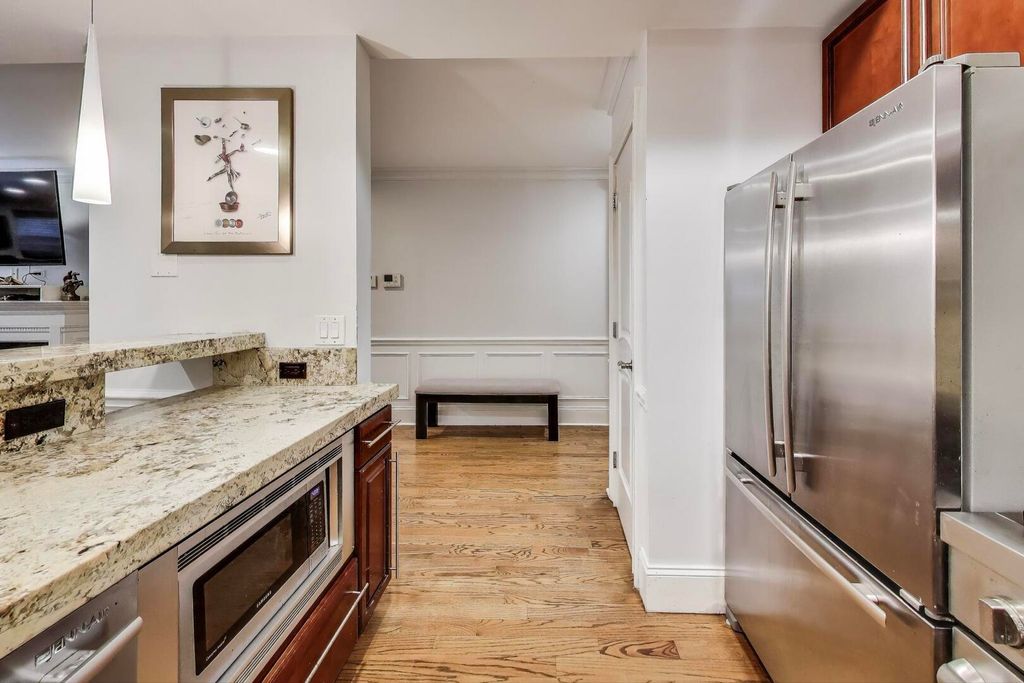Step into this beautifully crafted 3-bedroom, 2-bathroom condo, where no detail was overlooked. This expansive 2,100 sq ft residence showcases premium design elements, including 3 ft wainscoting in every room and hallway, elegant 12-inch crown molding, and striking 3-inch granite countertops that run the full length of the kitchen walls. The chef's kitchen also features custom cabinetry and top-tier finishes. Soaring 10-foot custom doors add a dramatic touch throughout the home, while the spacious layout includes a separate laundry room, generous closet space, and a luxurious primary suite complete with a steam shower and jetted jacuzzi tub. Enjoy both privacy and convenience with a private indoor/outdoor patio walkout from the third bedroom or office, plus exclusive access to a connected foyer with a coat closet-ideal for storing outerwear, boots, strollers, and more before entering your home from your private parking space. Pursuant to Short Sale