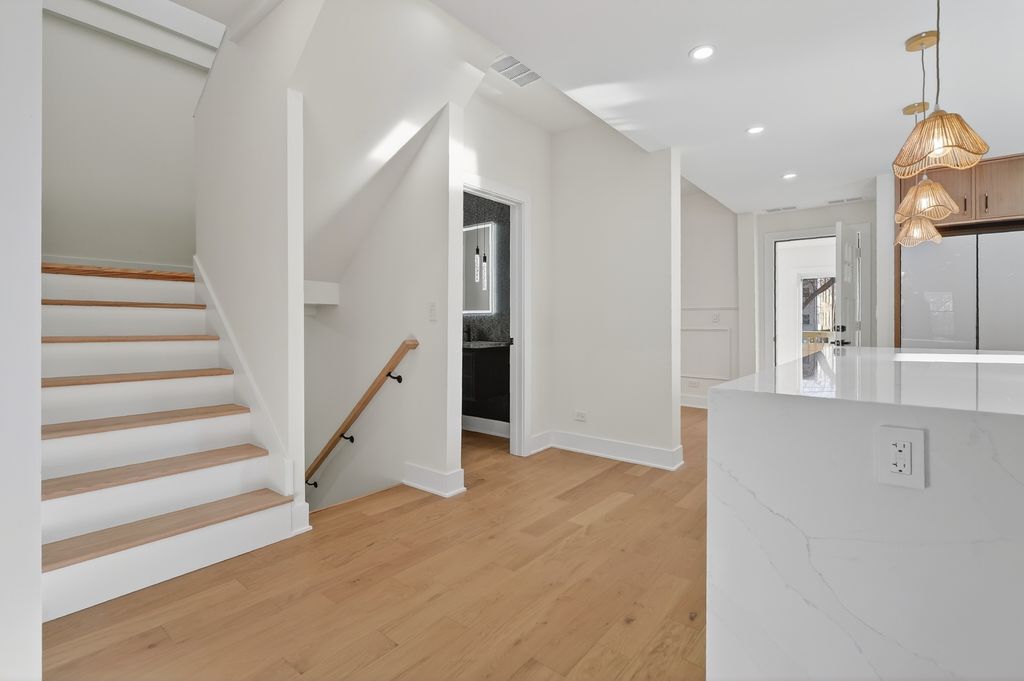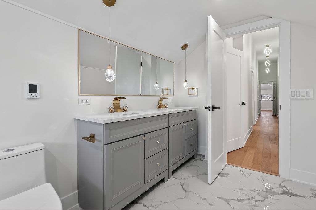 Welcome to a truly exceptional residence in the heart of River Forest, where timeless elegance meets modern luxury. This fully renovated home has been thoughtfully curated with impeccable craftsmanship, elevated finishes, and a warm, sophisticated aesthetic throughout. From the moment you enter, you are greeted by an abundance of natural light that enhances the home's gracious open-concept design and by soaring vaulted ceilings on the upper level. The expansive main living spaces flow seamlessly, offering both everyday comfort and effortless entertaining on a grand scale. The kitchen is a statement of refinement, featuring high-end appliances, custom cabinetry, and premium countertops, creating a space as beautiful as it is functional. Adjacent living and dining areas invite connection, while the sun-drenched sunroom provides an additional, elegant space for hosting or quiet relaxation. Each bathroom has been exquisitely designed with custom showers, bespoke counters, and luxurious finishes, including heated bathroom floors and a free standing tub that elevate daily living. The primary and secondary bedrooms offer generous proportions and serene comfort, making every space feel like a private retreat. The fully finished lower level is an entertainer's dream, complete with a stylish bar, expansive recreation space, two bedrooms and an oversized laundry room. For added convenience, a second, stackable laundry is located on the upper level - ideal for modern living. Every detail of this home reflects a commitment to quality, from the modern design elements to the inviting warmth that makes it instantly feel like home. This is a rare opportunity to own a turnkey luxury residence in one of the most sought-after communities, known for its architectural beauty, top-tier schools, and proximity to the city.