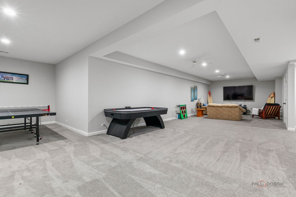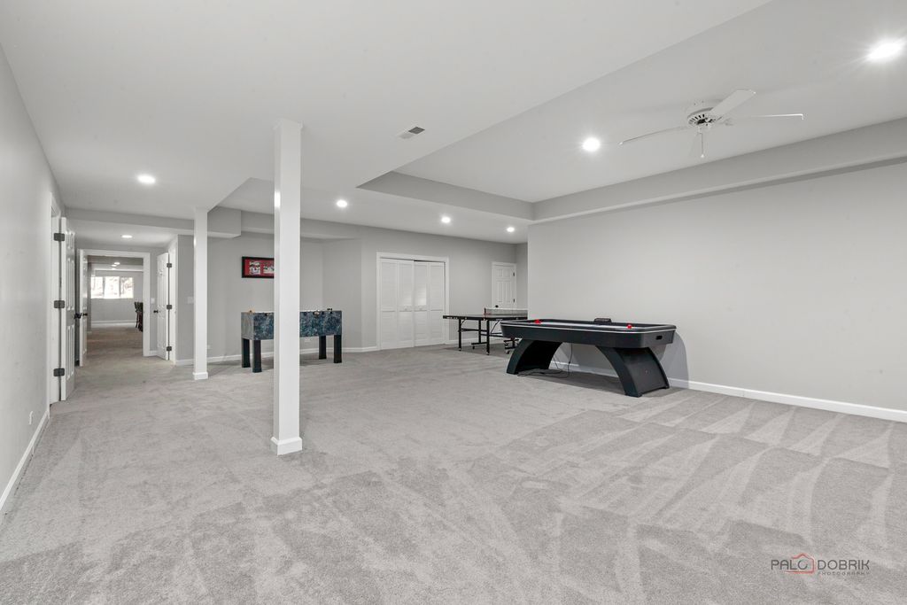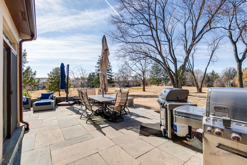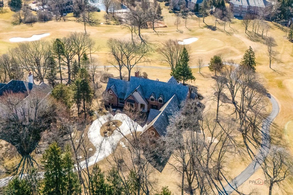 Welcome to an extraordinary all-brick estate set within the prestigious gates of Wynstone, where timeless architecture meets resort-caliber living. Perfectly positioned on nearly 1.5 acres at the end of a serene cul-de-sac and set high above the street for added prominence and privacy, this magnificent 5-bedroom, 5.3-bath residence offers over 13,000 square feet of uncompromising luxury and breathtaking golf course views from nearly every vantage point in the home. From the moment you enter, a grand foyer crowned with a soaring tray ceiling and dazzling statement chandelier creates an unforgettable first impression, introducing the refined craftsmanship and architectural artistry found throughout. The original builders spared no expense-solid wood doors, exceptional millwork, and high-end finishes speak to the enduring quality and thoughtful design poured into every detail. HEATED FLOORS are throughout the whole home, including in the garage and the indoor basketball sport court-an impressive feature rarely found. Designed for both elegant entertaining and elevated everyday living, the home unfolds with beautifully appointed formal living and dining rooms ideal for intimate dinners or grand-scale gatherings. At the heart of the home, the gourmet chef's kitchen is a true showpiece, anchored by an expansive island with breakfast bar seating, professional-grade stainless steel appliances, a generous walk-in pantry, and seamless access to the outdoor living spaces-perfectly positioned to capture the home's gorgeous golf course vistas. The adjacent family room is nothing short of spectacular, showcasing a dramatic floor-to-ceiling stone fireplace, cathedral ceiling, custom dry bar, and walls of windows that flood the space with natural light. Just beyond, a sun-drenched sunroom with a private hot tub provides year-round relaxation in a setting that feels both luxurious and secluded. The main-level primary suite is a private sanctuary unlike any other, featuring a remarkable two-level loft design, serene sitting area, oversized walk-in closets, and a spa-inspired bath complete with dual vanities, a soaking clawfoot tub, and a separate glass-enclosed shower. A richly appointed private office or library impresses with a coffered ceiling, floor-to-ceiling stone fireplace, and exclusive backyard access-creating a refined and tranquil work-from-home retreat. Upstairs, four additional bedroom suites each feature their own private ensuite baths and expansive walk-in closets, complemented by imaginative lofts, bonus spaces, and hidden retreats rarely found in luxury homes. A spacious central playroom anchors the third level, seamlessly connecting the various lofts and flexible spaces to create a dynamic and functional living environment. A spectacular in-law or guest suite includes its own lounge with built-in sauna and overlooks the home's show-stopping indoor half-court basketball court-an extraordinary amenity that truly sets this estate apart. The full finished English basement is an entertainer's dream, complete with an expansive recreation room with fireplace and wet bar, dedicated game room, exercise studio, huge cedar closet, and a private home theater delivering a true cinematic experience. Outdoors, the nearly 1.5-acre setting offers exceptional privacy and sweeping golf course views, with grand Bluestone patio and two outstanding locations ideal for a future pool-creating the opportunity to design a true backyard resort. Completing the estate is a five-car garage with the attached INDOOR BASKETBALL COURT, allowing for year-round recreation and convenience. 2021 Roof with new gutters and leaf guard!!! All of the bedrooms in the home are en-suites. Grand in scale yet thoughtfully designed for luxurious comfort, this remarkable residence offers an unparalleled lifestyle of elegance, privacy, superior craftsmanship, and endless possibility-all within one of the region's most exclusive gated golf course communities.