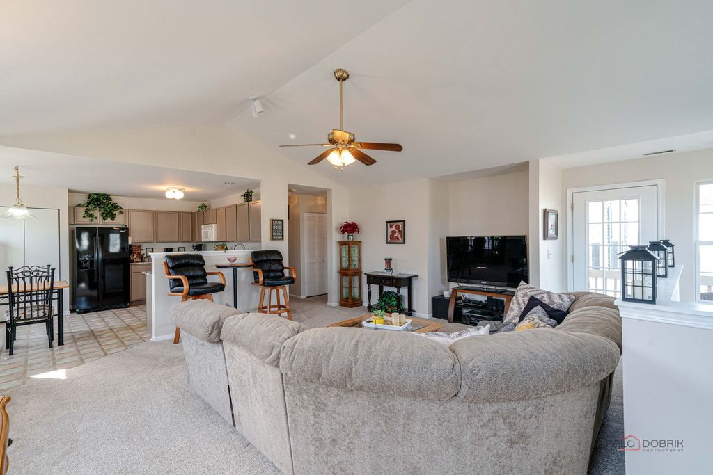 Spacious and quiet upper unit condo now available. The open floor plan features volume ceilings in the living room with a deck. The family room opens to a spacious eat in kitchen with plenty of cabinetry, counter space and pantry. The primary bedroom has its own full bathroom and walk in closet. Two more bedrooms and hallway bathroom. Separate laundry room. Attached two car garage and driveway makes it easy for guests and deliveries. Low HOA.