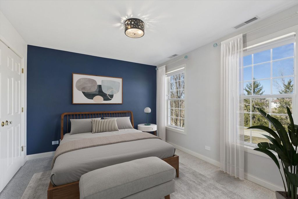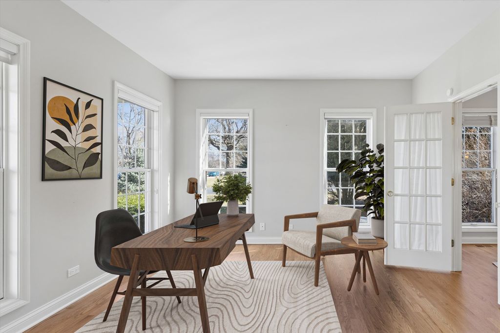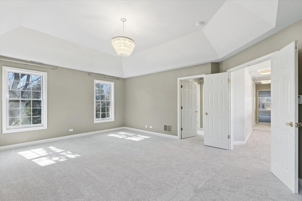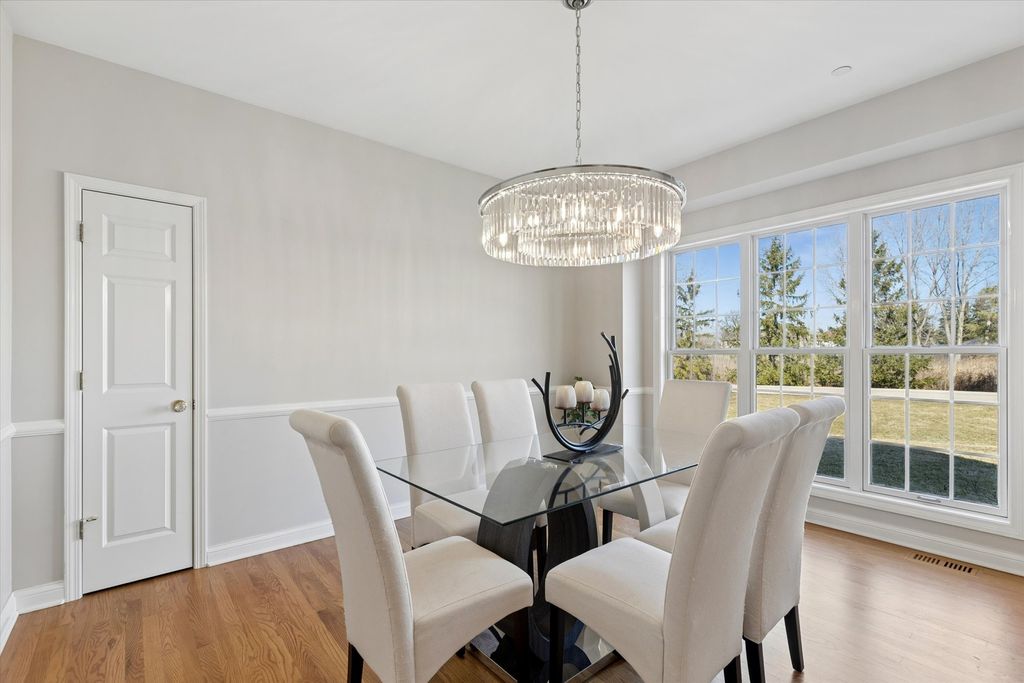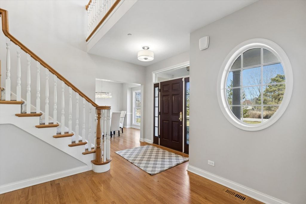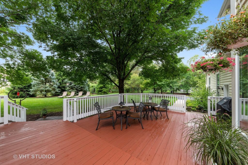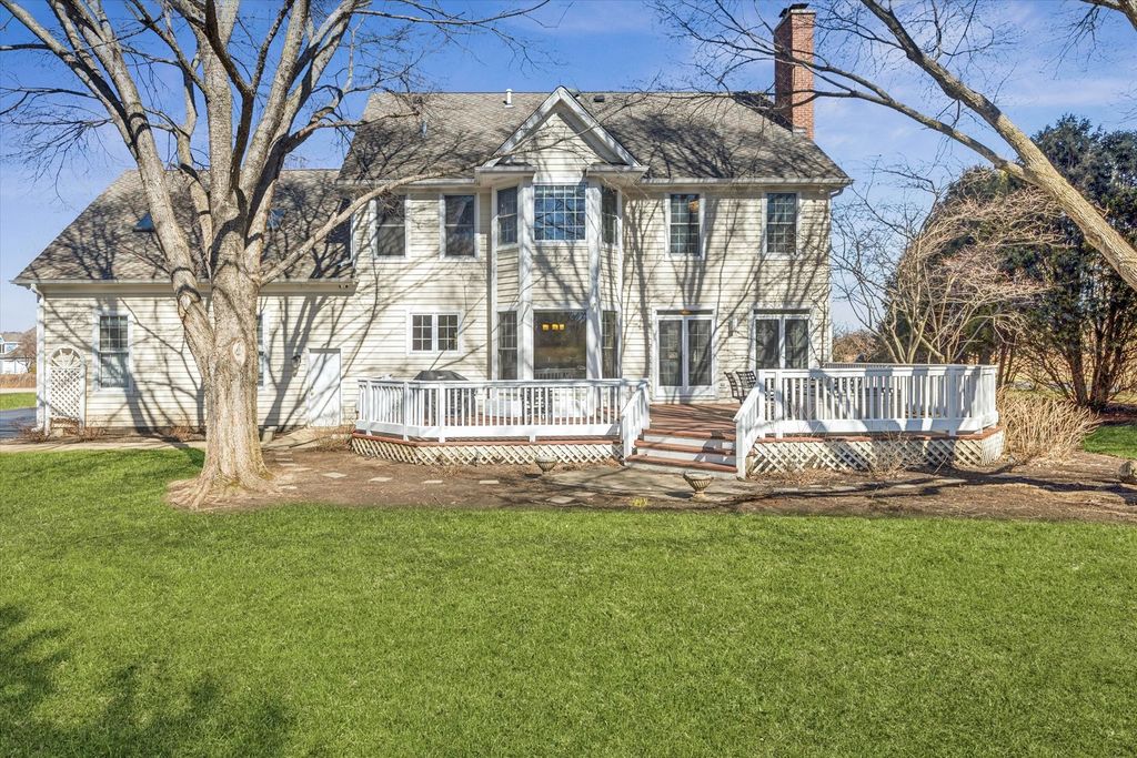 This beautiful 6-bedroom, 3.1-bathroom home sits on over an acre in the highly sought-after Glenstone subdivision of Long Grove. Enjoy serene conservancy views and the privacy of a cul-de-sac from the charming front porch. With a newly finished basement and fantastic updates, this home offers everything you have been looking for with over 4,200 square feet of finished space over 3 levels! Inside, a spacious foyer welcomes you, flanked by a private home office with French doors and a dining room, both illuminated by oversized picture windows that fill the home with natural light. The heart of the home is the open-concept kitchen and family room, designed for effortless living and entertaining. The eat-in kitchen boasts solid wood cabinetry, granite countertops, a center island, updated stainless steel appliances, and a built-in desk space. A wet bar conveniently connects the kitchen to the dining room, making hosting seamless. The family room features a striking marble fireplace, adding a cozy touch during colder months. With 9' ceilings and hardwood floors throughout, the main level is both elegant and inviting. French doors lead to an expansive outdoor deck-perfect for soaking up the sun, grilling, or dining al fresco while taking in the tranquil surroundings. Upstairs, retreat to the luxurious master suite, complete with a tray ceiling and a spa-like ensuite. Relax in the soaking tub, enjoy the glass-enclosed shower, or utilize the double vanity for added convenience. Three additional bedrooms and a full bath share the upper level, along with a massive bonus room-ideal as a home office, gym, playroom, or study area. Head downstairs to the recently finished basement, which includes 2 bedrooms, a full bath, second home office, and recreation/workout area. This home has been thoughtfully upgraded with a new asphalt roof (2011), finished basement (2025), 2 new furnaces (2023) and (2011), 2 new A/C units (2011), new sump pump (2022), new washer and dryer (2022), new refrigerator (2021), new dishwasher (2021), new microwave (2022), new Ecobee Smart Thermostats (2023), new tankless water heater (2022), a new sump pump, a new sewer line (2023) and second floor carpet (2026).The neighborhood is served by a community well and public sewer for ease of ownership. Nestled in award-winning District 96 and served by the prestigious Stevenson High School, this home effortlessly combines timeless design, modern updates, and an unbeatable location, located just one mile from historic downtown Long Grove business district with festivals, restaurants and shopping. This is a must see!