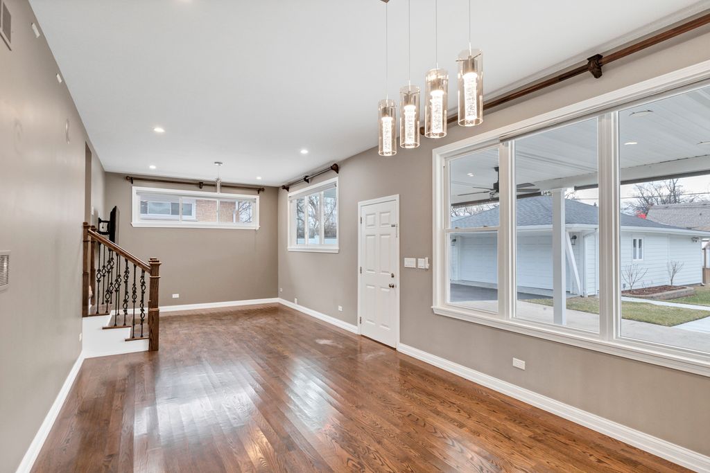 Completely updated 2 bedroom ranch situated in the heart of Hillside. The main level features hardwood floors and open floor plan. The living room flows right into the updated kitchen, complete with 42-inch cabinets, granite counters and backsplash, brand-new stainless steel appliances, a stainless hood, pantry cabinet, and breakfast bar. The family room connects to the dining area and opens to the backyard, perfect for both relaxing and entertaining. Two spacious bedrooms and an updated hall bath with a walk-in tiled shower, bench seating, and marble flooring complete the main floor. Downstairs, the finished basement offers a large rec room with a custom wet bar, granite counters, electric fireplace, luxury vinyl plank flooring, a full bath with Whirlpool tub, and a laundry room with cabinets and utility sink. Outside, enjoy the covered patio with ceiling fan overlooking the fenced yard with a new vinyl fence, greenhouse, and gas line for grilling. The detached 2-car garage features new Hardie board siding, epoxy floors, and extra storage, plus the driveway and stoop were replaced in 2024. Close to shopping, restaurants, the Metra station, Butterfield Road, and the interstate, this home is truly move-in ready.