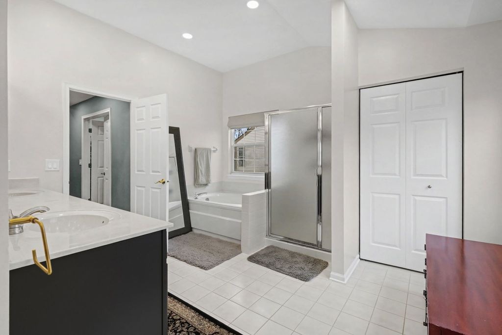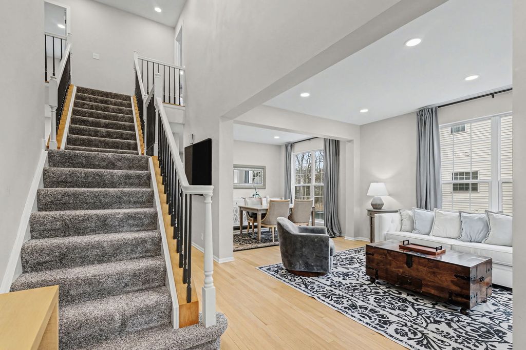 Multiple Offers...Final & Best Due by Saturday 2-28 @ 5PM. One of the largest models in the MAINTENANCE FREE neighborhood of The Sanctuary. This home offers ~2800 square feet on the first two floors with an additional ~1200 in the finished English Lower-Level. Two story Foyer greets guests with an open floor plan freely flowing the Living and Dining Rooms together making the ideal entertaining spaces for guests featuring recessed lighting with custom fixtures and large double windows. Updated Kitchen features granite counters, white cabinetry with stainless steel appliances and a large eating area with direct access to the custom deck over looking a tree lined backdrop with pond views. Open to the Eating Area, the two story Family Room boasts two story custom cornered windows complete with custom draperies, and a fireplace. First floor powder, a large laundry/mud room, and attached two car garage with epoxy flooring system complete the first floor living spaces. Second Floor Primary Suite features a vaulted ceiling treatment with ceiling fan/light, two separate custom walk in closets, and a huge bathroom with double bowl vanities, separate tub & shower, custom ceiling treatment and large linen closet. Three large additional bedrooms with ample custom closets plus a full bathroom with double bowl sinks and shower tub complete the second floor living spaces. A fully finished English basement offers the ideal space for toys, further guest entertainment or late night movie fun and features a full wet bar/kitchenette, full bathroom and large South-East facing windows overlooking mature trees with a water view. Location is ideal with easy access to all major roadways, short drive to downtown Lake Bluff or Lake Forest offering numerous shopping or restaurant options, Lake Bluff Beach, and also many bike/walking trails throughout the neighborhood and nearby.